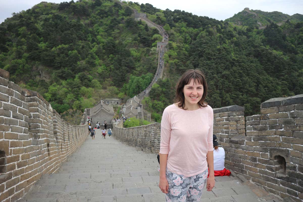 Навіть попри те, що вона така смачна. Мені, напевно, варто випустити окремо книгу “Про те, як ми з Дашею смачно їли в Китаї”. Мені здається, що книга за розміром вийде не менше цієї розповіді) Ми їхали далеко за межі Пекіна. Стіна дуже довга і має різні оглядові точки у різних частинах міста та країни. Ми вибрали для огляду ділянку у Мутяньюй. В автобусі я допоміг розібратися з грошима одній дівчині, вона виявилася українкою, яка знає китайську. Одного разу автобус зупинився і нам китаєць сказав, що ми маємо пересісти в таксі. Ми в принципі і так знали, що нам знадобиться таксі на кінцевій. Водій наполягав, щоб ми вийшли саме зараз посеред траси. Але оскільки в нашій команді була китайськомовна дівчина, то ймовірність лохотрону сильно знижувалася. Також з нами вийшла дівчина з Грузії та мексиканець Маріо. Таксист спробував заламати ціну, але відповіді китайською ніяк не очікував. У результаті ми поїхали на стіну значно дешевше. Під час поїздки ми почали синхронізувати між собою маршрути, хто десь вже був і що треба подивитися. Дівчина уважно подивилася на мене і запитала чи я не той блогер, який писав в інтернеті розповідь про Гонконг? Мене знову впізнали! Перед поїздкою до Китаю вона читала про нашу з Дашею подорож до Гонконгу, щоб скласти собі маршрут. Це було несподівано та радісно!