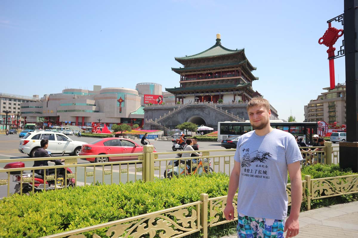 Коли їхали автобусом, то потрапили в настільки довгу китайську пробку, що могли обговорювати стіну цілих 4 години. Стіна в Пекіні зайняла майже весь день. І вже саме час вирушати до колишньої столиці Сіань. Ми зайшли в наш поїзд і дісталися купе. У купе сидів китаєць із китаянкою. Побачивши нас, вони почали буквально сяяти від радощів. Було видно, що пара захоплена, що закордонні туристи їдуть з ними в купе. Але головним козирем була китайська мівіна, яку ми почали собі запарювати. Видно було, що китайці дуже схвалюють наш вибір. Вони навіть допомогли її запарити за всіма правилами. У наше купе зайшла провідниця і китайською розповіла правила безпеки і що робити у разі проблем (ми так думаємо, що мова була про це). В основному вона говорила це китайській парі, але наприкінці жестом вказала на нас, мовляв “І цих двох, будь ласка, не забудьте захопити під час евакуації”. Прямо радісно що ми їдемо китайським поїздом з китайцями в одному купе. Я помітив, що всі пасажири ходять у тапках. Ми почали шукати свої тапки, вони виявилися сховані під полицею. Запечатані та дуже мокрі, прямо з мильною піною. Ну гаразд, будемо без тапок, що нам. Але дівчина збігала до провідниці і принесла нам дві пари сухих капців. Які ж вони милашки. Жаль, що хлопець уночі не хропів так само мило. У мене навіть було рішуче бажання вивчити переклад фрази китайською “Не могли б ви будь-ласка повернутись на бік?” Але хлопець ніби прочитав мої думки, і повернувся хропіти на бік.