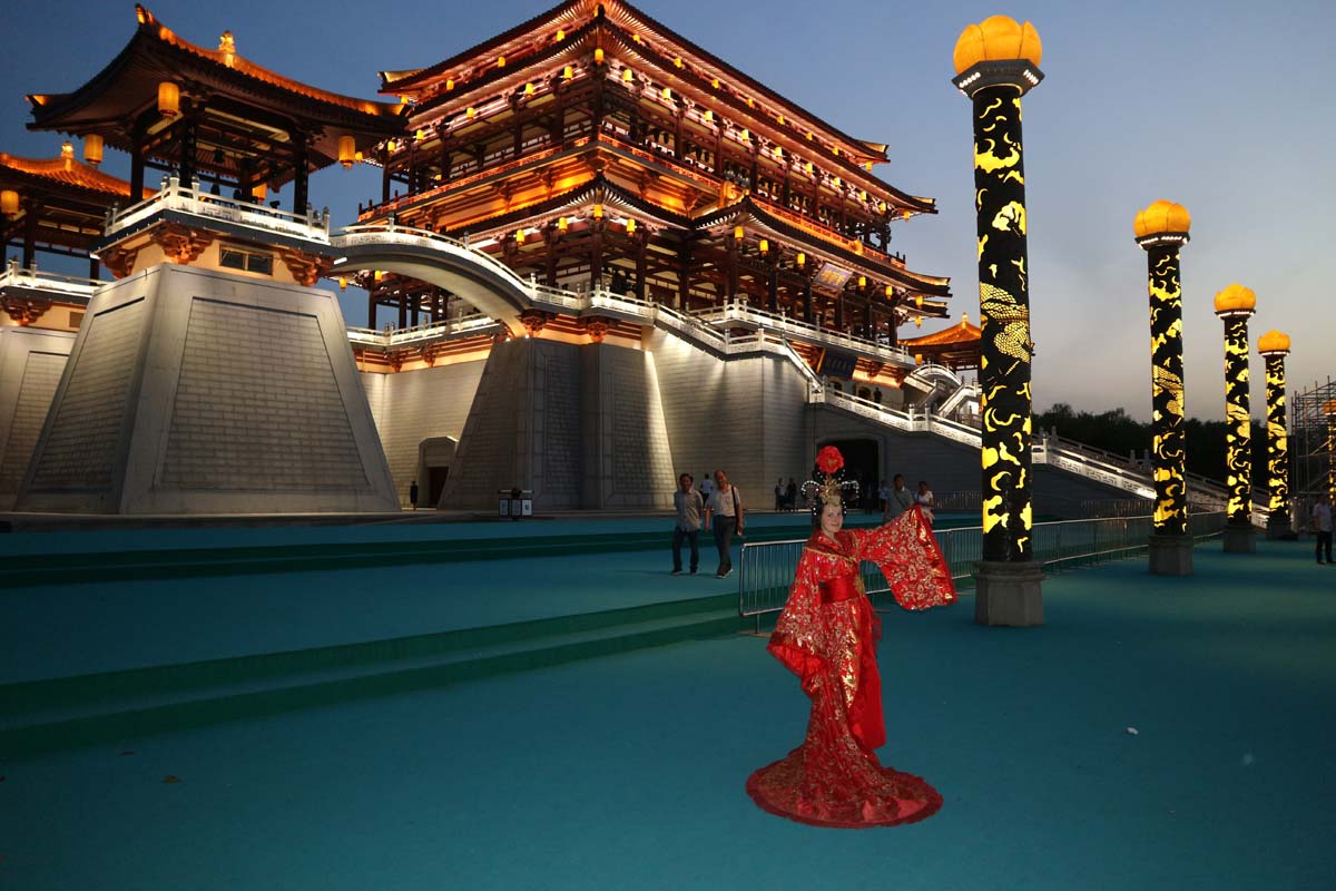 Китайці там сидять натовпом. Часто буває, що Старбакси стоять одразу по двоє один навпроти одного. Ми думали, що на пагоді закінчується наша програма по місту, але вона лише набирала обертів. Вулиці нас привели до входу до парку Tang Paradise. Вхід був платний по 90 юанів (14 $). Ми пішли дивитися, що там криється за брамою. А за брамою нас чекало одне з найкрасивіших творінь людства. Чому парк не занесено до списку чудес світу?