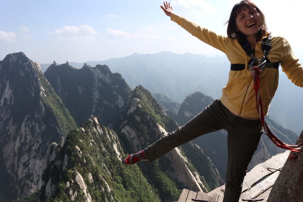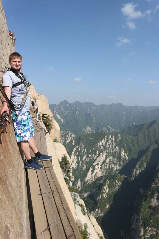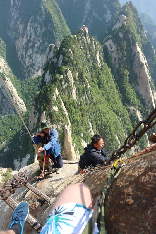 Ми дійшли до початку. Тепер треба зняти страховку і пройти вузьку чергу зі ста китайців і туристів, що очікують. На нас дивилися, як на героїв. Багато хто, хто знав англійську, хвилюючись питали чи лячно було і наскільки нам сподобалося. Відповідь була одна “Так! Воно того варте, це буде незабутньо”. Тепер треба бігти назад – на канатку, поки не пізно. Я не знаю, що ми далі пропустили на стежках гори, але те, що ми пройшли, тепер буде нашим почесним досягненням. Це було фантастично.