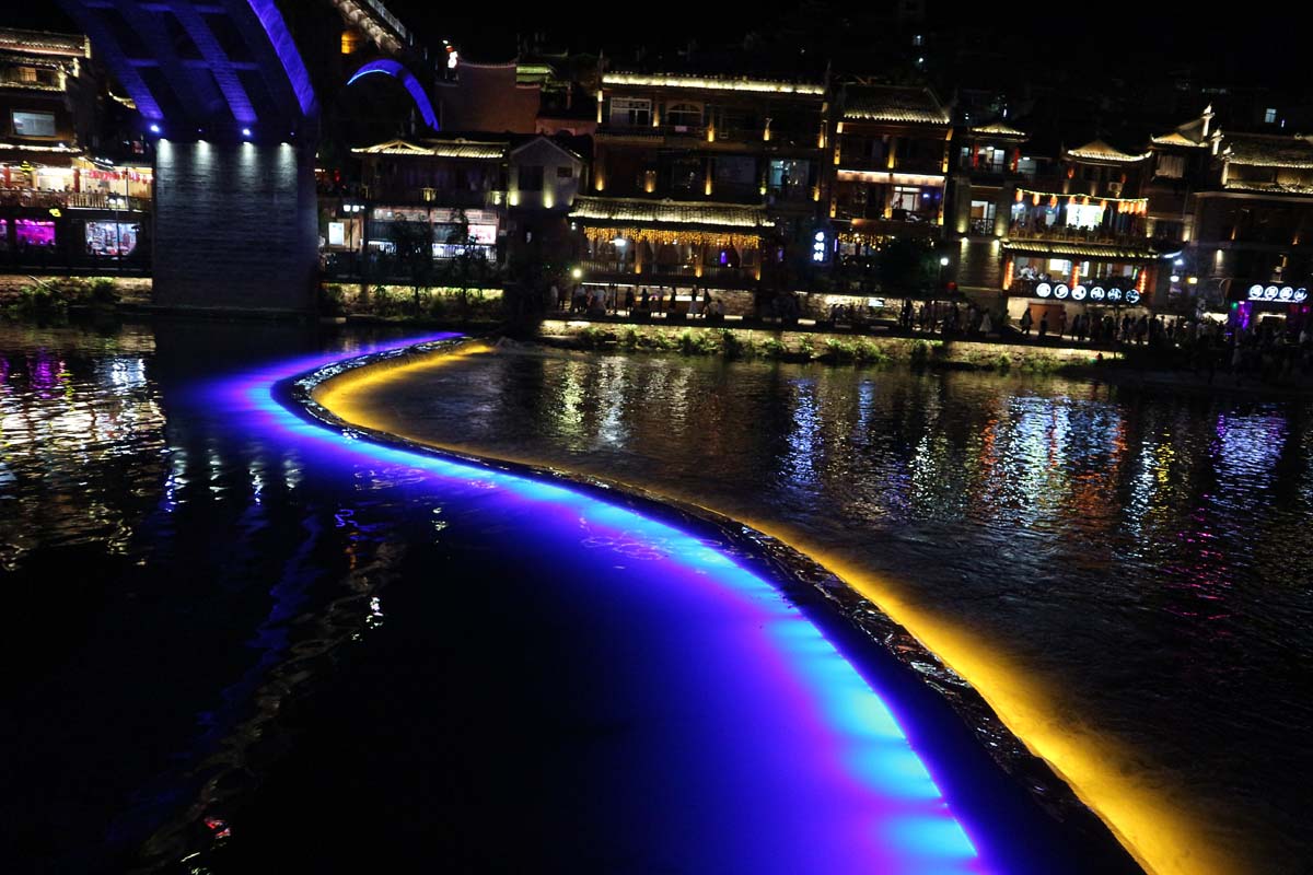 Складалося враження, що хмарочоси тут побудовані тільки для того, щоб тішити ночами погляд туристів. Даші набережна теж сподобалася, але моє моральне задоволення від висоток навряд чи хтось може осягнути в такому обсязі. А скільки ж тут було нічних весіль, і всі з яскраво червоними сукнями. Просто так гуляти біля річки та милуватися висотками було недостатньо, треба терміново перебратися на інший берег та погуляти там. Перебратися можна було різними способами. Ми вибрали досить незвичайний. Це були невеликі кабінки, що йдуть тунелем під річкою. Тунель інтерактивний та змінюється різними зонами.