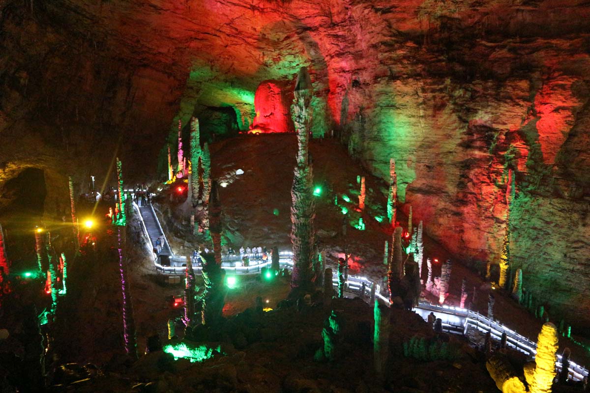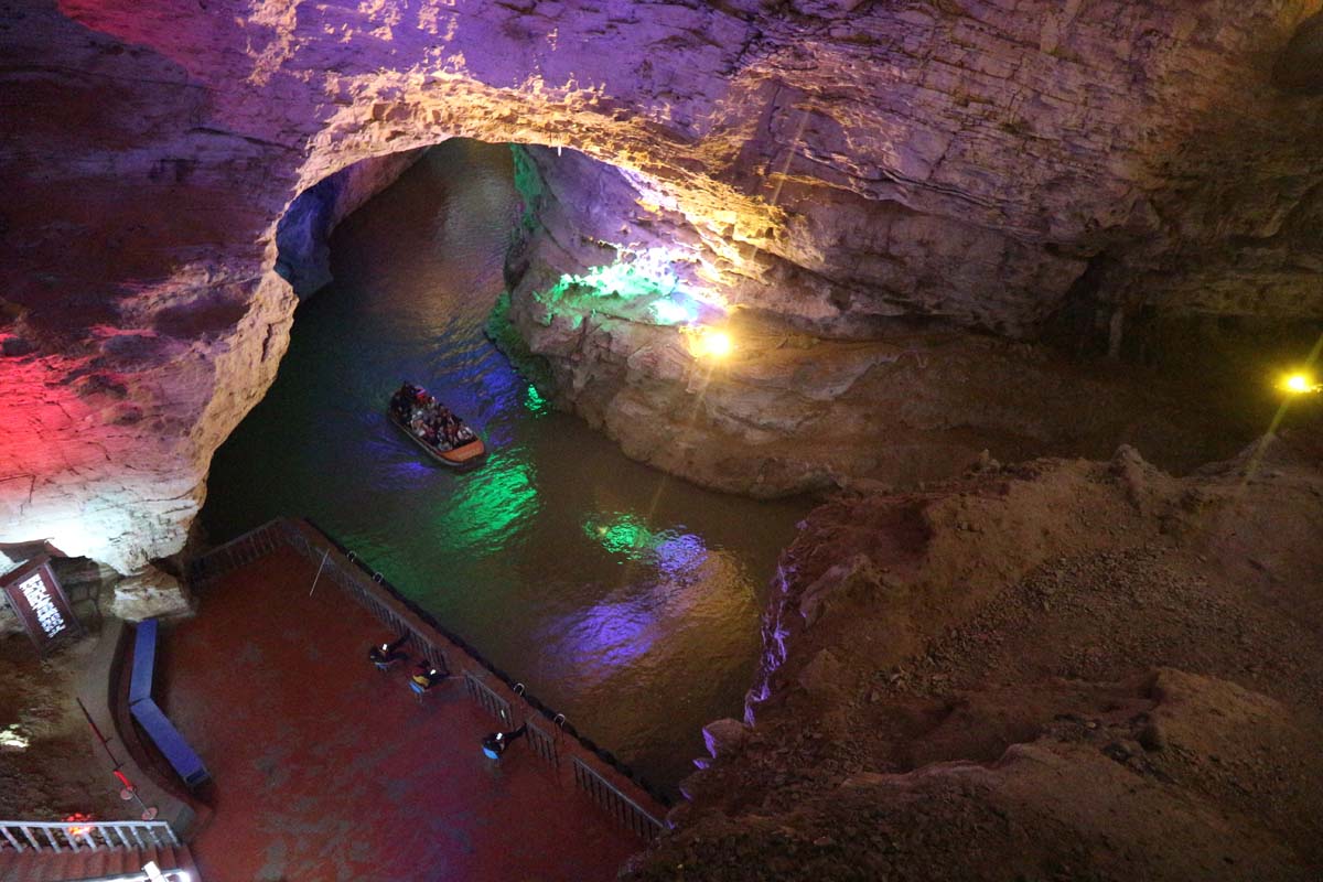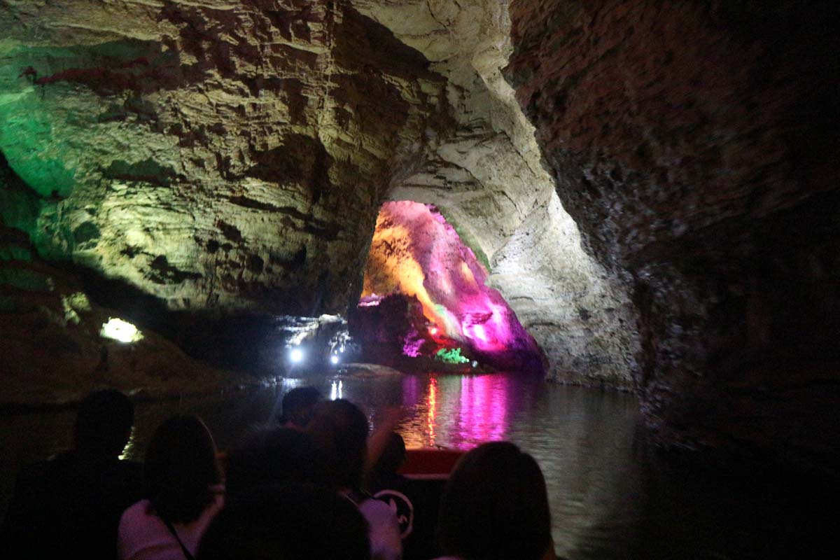 Печера була настільки велика, що всередині ми навіть на катері каталися підземною річкою. Кількість ходів і залів тут вистачає на години. Тут навіть є 30-метровий водоспад, що ллється серед просторої зали. Водоспад, звичайно, не повноводний, але освітлення йому зробили так, ніби промінь з неба сходить на землю.