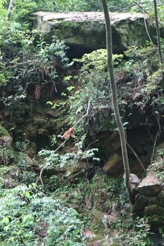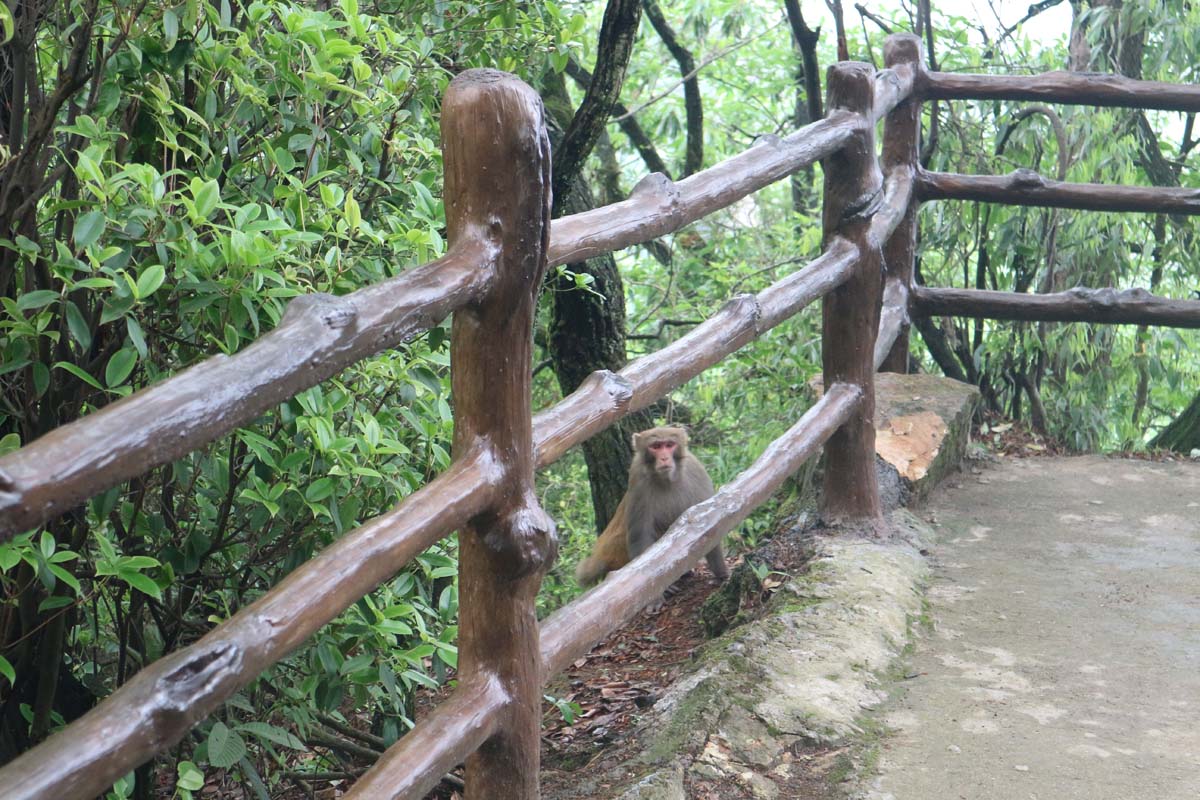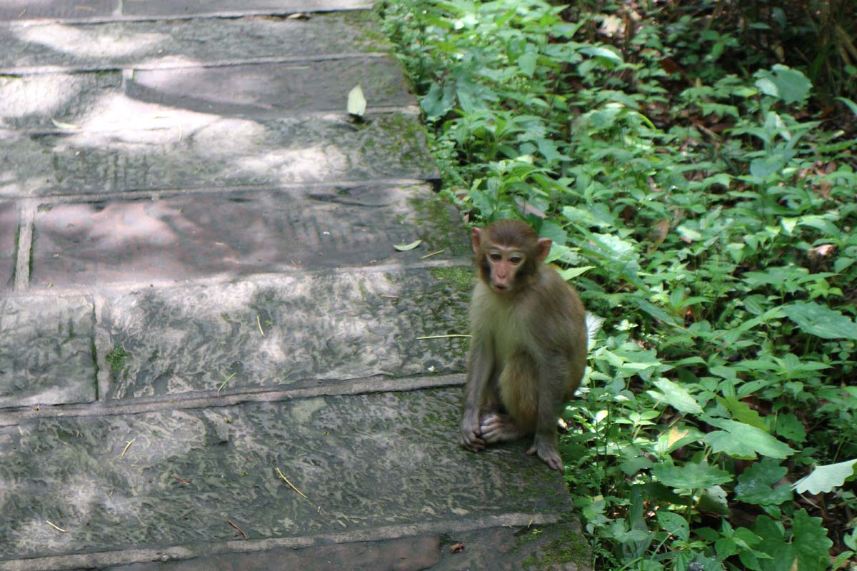 Але мавпа побігла іншою стежкою, на переріз до нашого продовження маршруту. Треба було швидко бігти, поки вона не виявиться на роздоріжжі першою за нас. Ми пробігли роздоріжжя. Десь шелестіли дерева. Мавпа збилася зі шляху. Потрібно терміново відірватися. Назустріч нам йшов китайський турист. Я йому спробував пояснити, що на нього чекає далі, але він мовчки продовжив шлях. Цікаво скільки треба мавпі з’їсти китайців, щоб дати нам спокій. На щастя для нас або звір втратив слід, або справді перейшов на того китайця. Коли ми переконалися, що в безпеці, просто сіли і відходили від того, як ми вміємо швидко бігати з важким камінням у гору. Каміння ще якийсь час було страшно випускати з рук. Але скажемо, так – без мавпи маршрут підйому був би зовсім похмурим. Ніколи! Чуєте? Ніколи не кладіть банан у прозорий пакет у парку з мавпами!