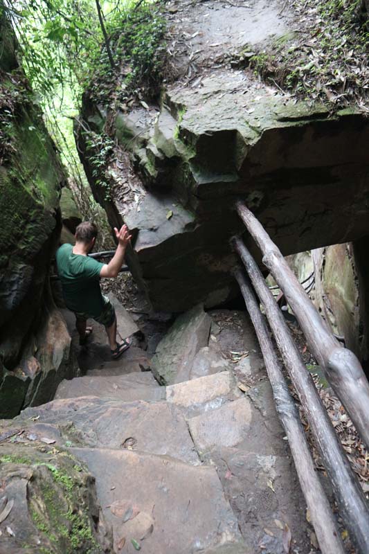 Схопив пакет максимально сильно, я починаю кричати Даші про напад мавпи. Обертаюсь назад, а мавпа заввишки на половину мого росту і відступати не збирається. Спроби злякати її почали лише посилювати ситуацію. Мавпа своїм виглядом показувала, що готується до атаки. Ми віддалилися метрів на п’ять. Я схопив із землі камінь, пригрозив звірові, що кину. Але тварина наче прораховувала можливу траєкторію. Я кинув камінь у мавпу, вона спритно ухилилася і почалася погоня. Півтора кілометри, що залишилися по сходах вгору, ми здолали за якісь хвилини, та ще й з важким камінням в руках. На маршруті нікого, крім нас, не було, мавпа не відступала. Навігатор нас по-зрадницькому підвів, і ми опинилися на красивій і дуже високій оглядці з єдиним входом. Поки ми з мавпою погрожували друг другу, роблячи один одному діаметрально протилежні маневри, Даша намагалася знайти стежку зі спуском, але скрізь урвища вниз. Віддати мавпі їжу теж не варіант, тоді вона точно не відчепиться.
