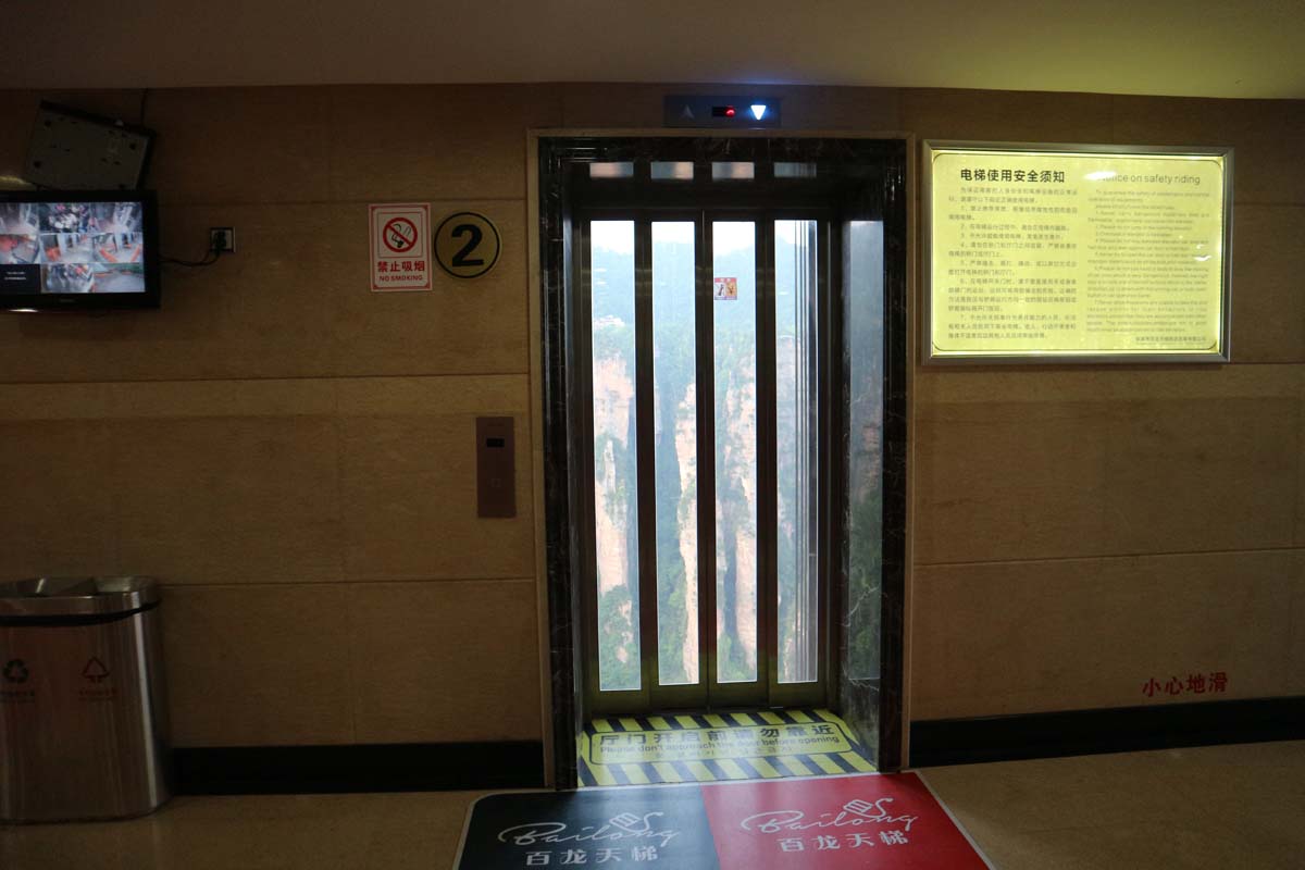 Переступили річку і вибралися на дорогу! Тут уже зібралися такі ж екстремали в очікуванні автобуса. Автобусів було багато, в одному був навіть водій. Але він не особливо поспішав, треба було, щоб, напевно, всі з гір повилазили. Дорога до виходу була ще досить довгою. Парк закривався явно пізніше за заявлений час. Наприкінці нас чекав найвищий прозорий ліфт у світі.