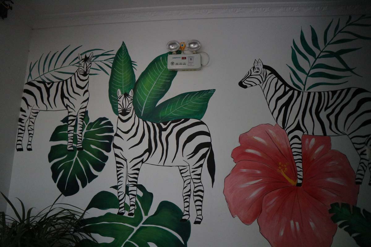 Дорогою до номера, за нами стежила намальована зебра. Зебри були на стінах і одна з них мала строго китайське коріння, судячи з очей.