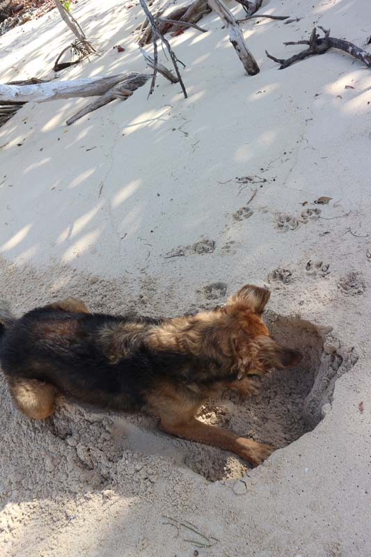 За красою реклами Баунті просто відпочивають. На фотоапараті фотографії виходять значно гірше, ніж насправді. Були невеликі пляжі метрів по 100, деякі були гігантські у вигляді дуги, гадаю до кілометра завдовжки. Якщо втомився, знайди пальму зі свіжим кокосом, і влаштуй собі кокосову паті на тлі екзотичного океану. Наш Курасончик теж часом знаходив собі розваги, йому подобалися краби, які ховалися в норах, він їх розкопував і намагався дістати. Невдоволений краб у результаті втік у море. І так один за одним пляжі змінювали один одного кілометрами! Між пляжами зазвичай до 20 хвилин не складні переходи у гаях джунглів.