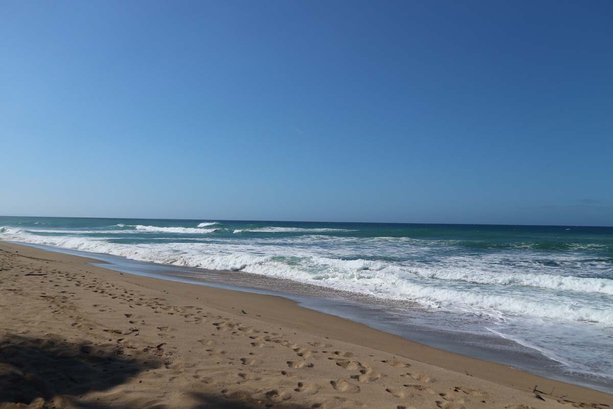 Він був дуже довгим, хвилі були потужні. Схоже, зараз не сезон на пляжі та готель закритий, але ми потім бачили, як працівники поливають рослини та доглядають готель. Це дуже крута атмосфера, за два кілометри від міста закритий готель та дикий пляж із надзвичайними хвилями. Немов пройшов апокаліпсис, і ми гуляємо залишками цивілізації біля стихії.