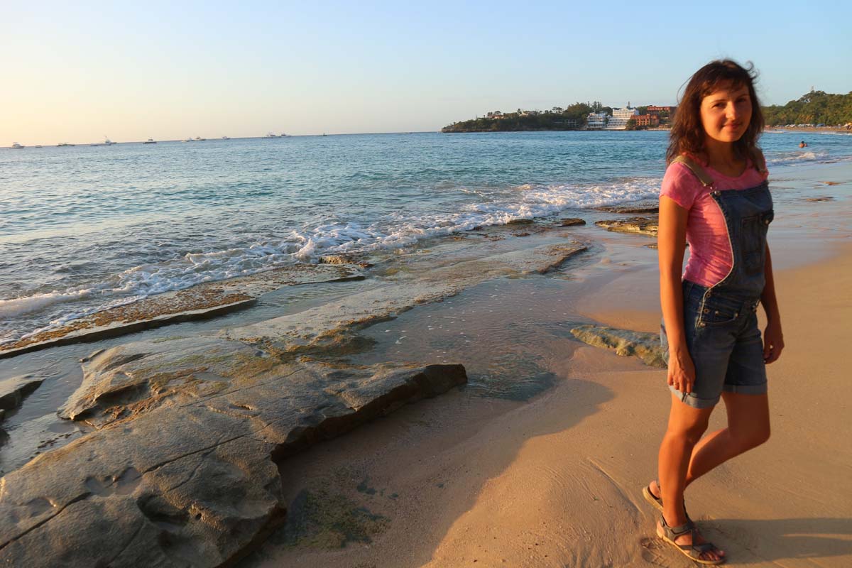 Поки трапезували, мені у вайбер написав форумчанин із Турправди “Андрію, вітаю тебе, ти виграв у номінації Автор 2018 року!!!”. Даша саме відходила помити руки. Коли повернулася, я запитав її: “Як тобі обідати в Домінікані з найкращим автором 2018 року?”. Чи нам було радісно в той момент? Ми сяяли так яскраво, що вночі заважали один одному спати від сяйва. Даша прокинулася, щоб вимкнути світло, а це виявилося сяйво від мене йшло. Але повернемося до міста з кислою назвою) Ми чудово пообідали і були сповнені сил продовжувати пошуки пригод. Карта нам показала, що за два кілометри від міста є пляжна лінія. Правда сонце ставало все злішим і злішим. Але ж не їхати назад. Ми не знали, в який час буде останній автобус, але поки ясно вони точно повинні ходити. Ми пішли у бік пляжів у надії що, нас підбере якийсь мотоцикліст. Але ніхто нас так і не підібрав. Дорогою проходили повз хлопців, які щось посилено рубали за допомогою мачете. Причому рубали вони в канаві біля дороги, збоку здавалося, ніби хлопці позбавляються когось. Ми не стали їх турбувати і тихенько пройшли повз, хоч у них і були мотоцикли. Дорога нас привела до розкішного, але закритого готелю. Все виглядало свіжо, доглянуте, без сміття, ось тільки ні людей, ні охорони. Ще була стежка в обхід готелю до пляжу, але ми вирішили, що це не так цікаво, як погуляти готелем. Ми пройшли ворота і йшли зеленою територією. Куди ж усі поділися?Готель від працюючого відрізняється тільки повною відсутністю людей. Ззаду почувся звук мотоцикла, хтось їхав у наш бік, але в результаті не ризикнув заїжджати в готель і поїхав стежкою. Ми йшли все далі і далі, доки не зустрілися очима з охоронцями, які сиділи та з цікавістю весь час спостерігали за нами. Ми з впевненим виглядом змінили траєкторію у бік пляжів і пішли, начебто так і планували. Вийшли на дикий пустий пляж.