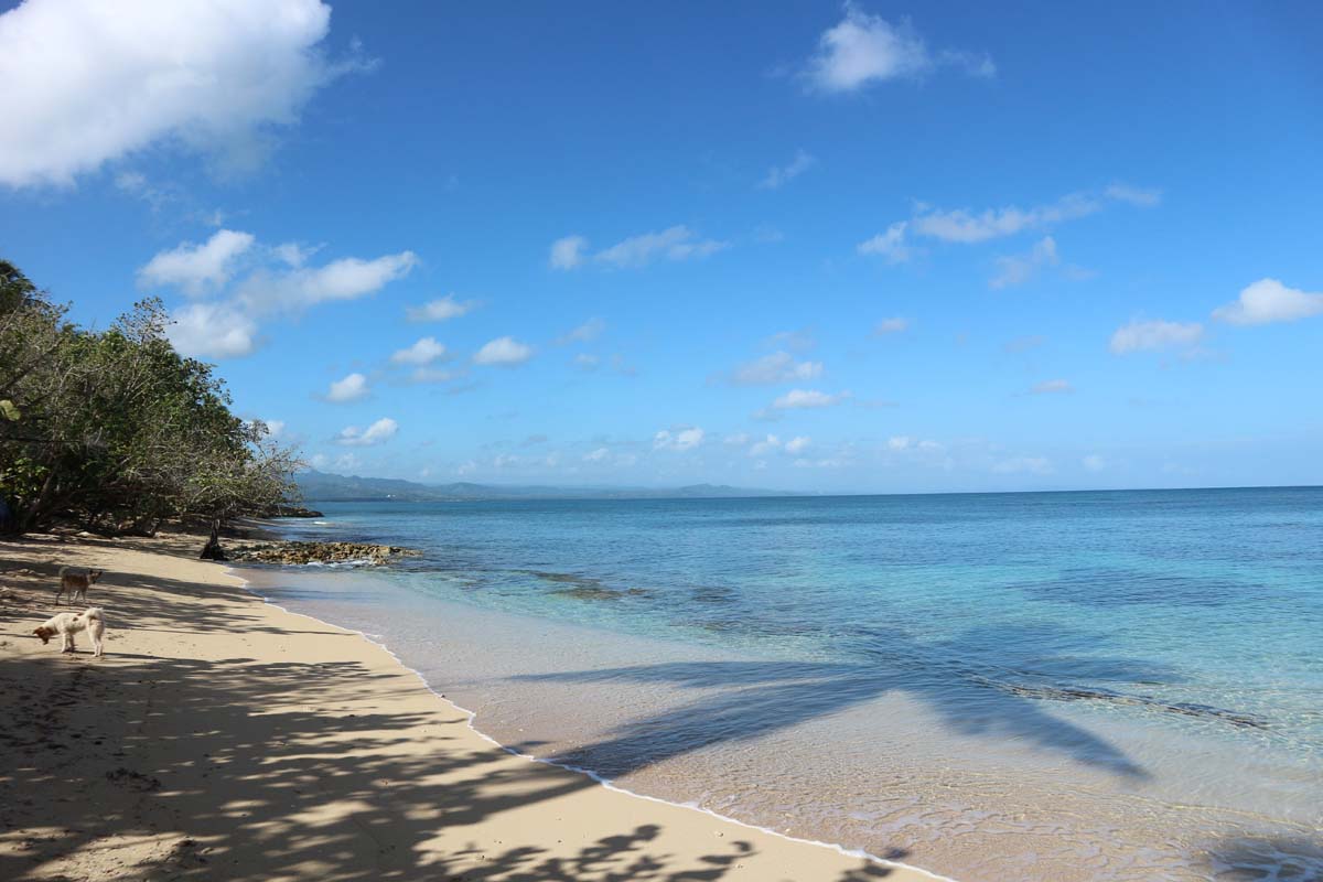 Загалом вже тільки заради цієї прогулянки пляжами вже має сенс їхати до Домінікани! Ми почали рух від Las Galeras пляжною лінією у бік гір (спочатку трохи обходили містом). Нашим провідником зголосився бути пес Ель Курасон (це ми його так назвали). Собачка бігла, завжди попереду показуючи нам стежки між пляжами.
