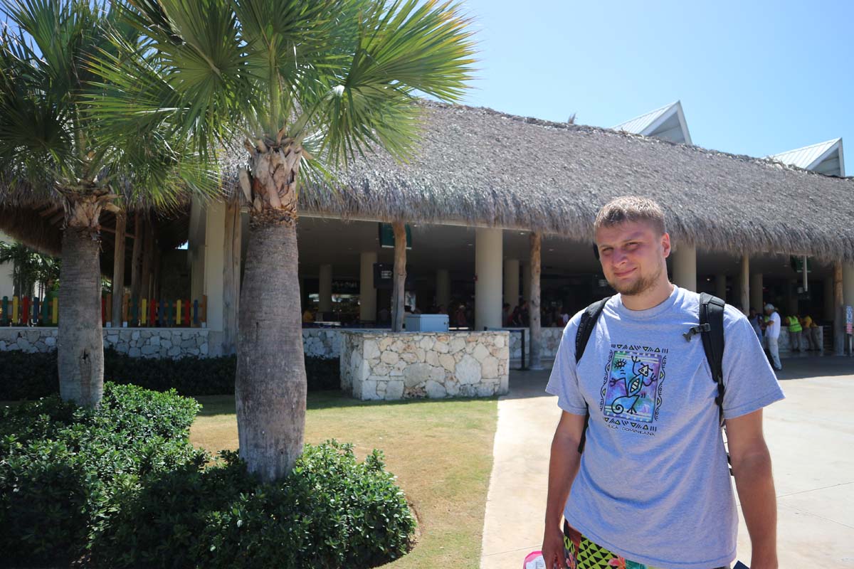 Ми пролітали над блакитними пляжами і під сонячними промінчиками м’яко приземлилися. Аеропорт нас зустрів живою музикою та дуже незвичайним дизайном. Це були будиночки із солом’яним дахом і без стіни, що відокремлює злітні смуги від зони очікування. У першу ж секунду ми поринули в атмосферу поїздки, що почалася. Оскільки літак був чартерний, практично всі летіли пакетними турами. Ми підійшли до дівчини у фірмовій футболці тур оператора, щоб запитати, де тут автобуси. Вона привітно спитала, який у нас готель, щоб відправити нас на трансфер. “Ем, ось саме готелю з трансфером у нас немає, ми тільки квитки купили з тур пакета”. Дівчина нас запевнила, що жодних автобусів тут немає, і лише таксі за шалені гроші (торгувалися з нами збиваючи ціну до 60$ за переїзд Аеропорт – Bayahibe).