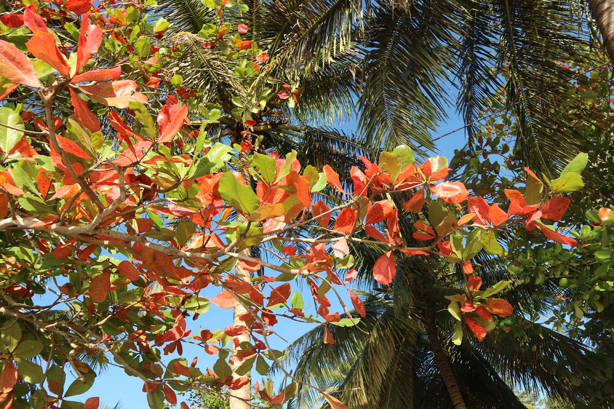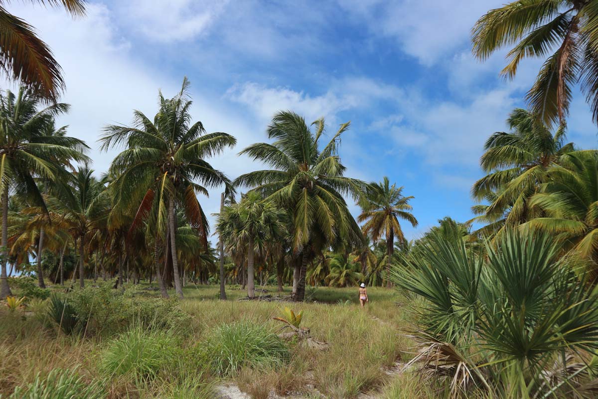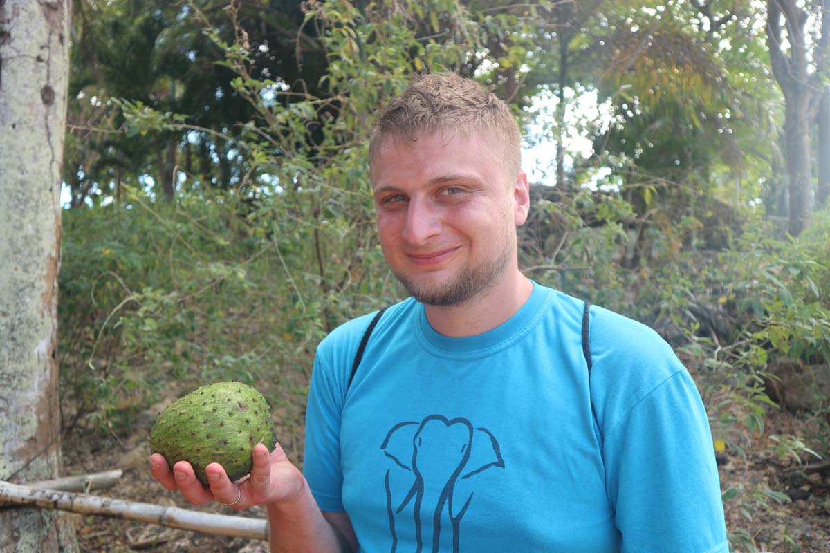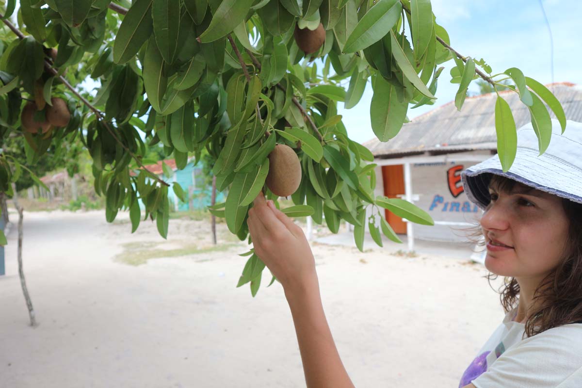 На цій зупинці я більше назвав би їх пальмовим лісом. Було дуже екзотично! Чому дві години пролетіли із такою швидкістю??? Це не чесно, ми ж тільки но припливли. Гаразд, давайте на другу локацію. Нас привезли на другий пляж, там нам під тінистими пальмами накрили чудовий фуршет із безлімітним холодним пивом. Фуршет був біля моря. Під час трапези продовжуєш очима десь там плавати. Я помітив, що над головами сусідів висять великі кокоси. Сусіди також помітили, що я задивився на кокоси прямо над ними. Вони тривожно подивилися на гіда, той заспокоїв, що ще нікому на голову нічого не впало. Поки застілля було в розпалі ми з Дашею по офлайн карті пішли в джунглі шукати якусь лагуну. Тут вже були не пальми, а густі чагарники та мангрові шипи. Проходили повз дерево з апетитними фруктами.
