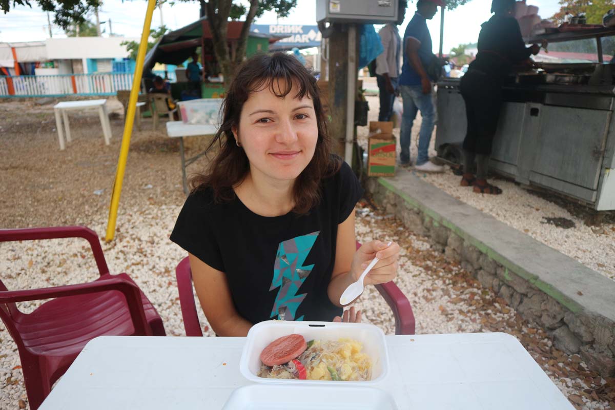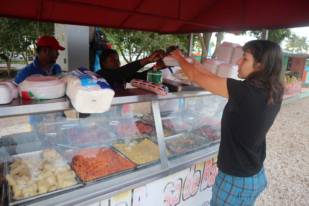 О 6-й ранку було ще темно, ми не поспішаючи вибралися на вулицю. Тиша! Отже, музика тут лунає не цілодобово все-таки. На превелике щастя, перші прокинулись домініканці саме ті, хто готував сніданки. Прекрасний батат з яйцями, смаженою докторською ковбаскою на нас уже чекав. Місцевим жителям явно було приємно, що ми маємо таку любов до стріт-фуду. Ось тільки чому немає гострих соусів — загадка. Гаразд, ми маємо бути сміливими, ми виживемо і без дезінфекції!