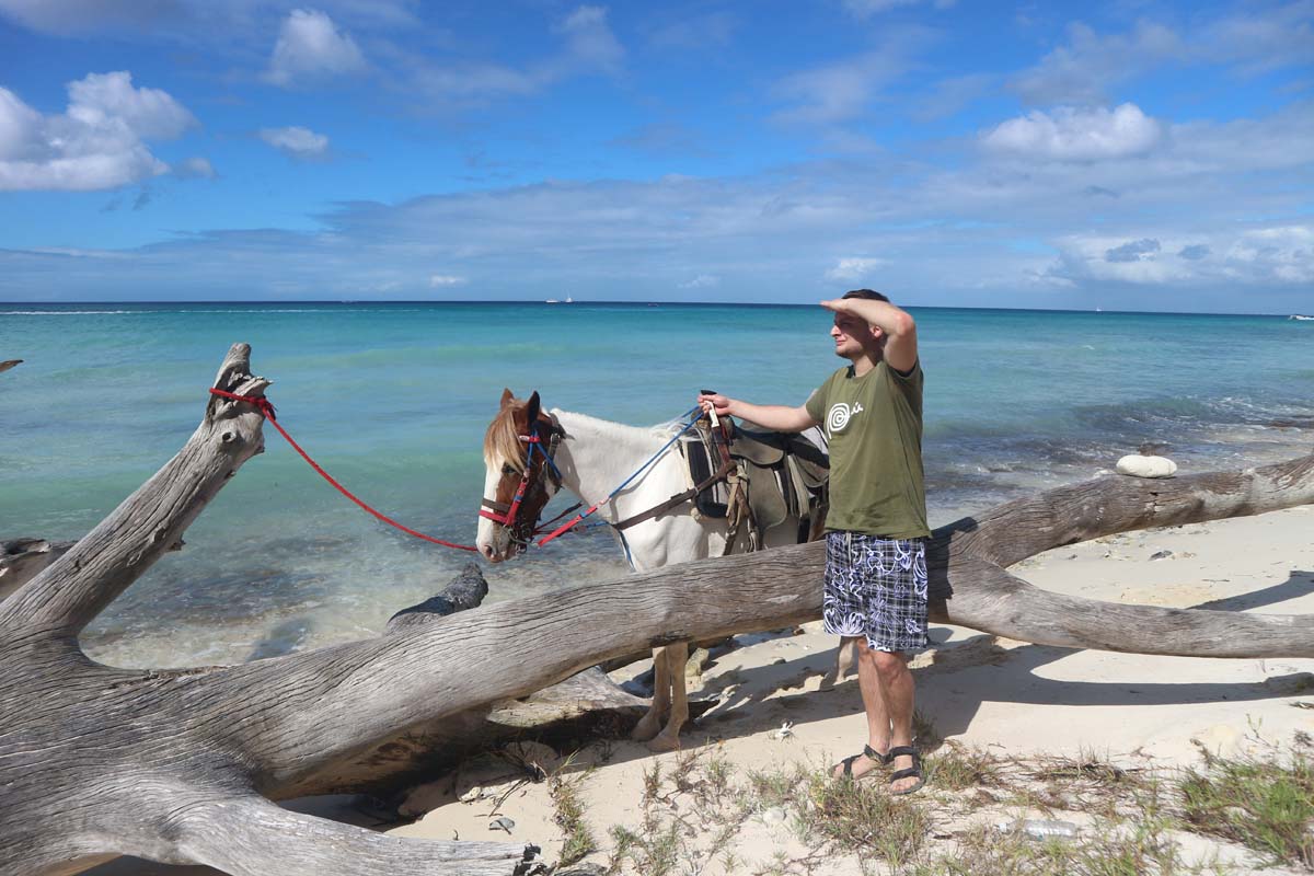 Далі в маленькій лавовій ванночці з-під каменя виглядала тітка Мурена. Протягом маршруту до нас іноді прилітали пташки схожі на колібрі, та яскраво зелені міні папужки. Простягаючись у нескінченність пляж, не те що б радував око, від нього просто неможливо було відірвати погляду. Для цілковитої картини я сфотографувався зі своїм вірним конем! Не питайте мене, де я там знайшов свого коня)))