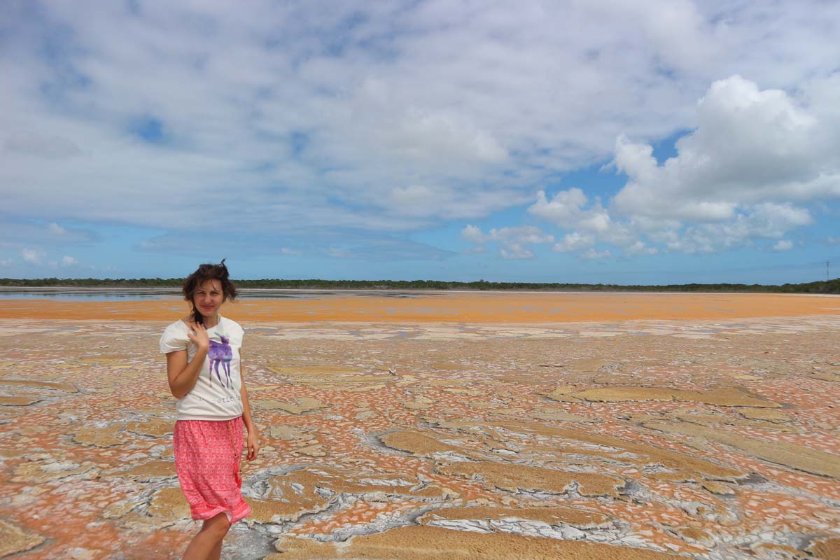 Місцевий житель підійшов до нас і пригостив порізаним фруктом. Було щось поході на фінік, тільки дуже велике та соковите. Далі серед заростей на нас чекала невелика сіренька змія, помітивши нас вона вирішила, що не хоче пригод і поповзла. До лагуни ж пробратися було неможливо стежками, довелося трохи прориватися через зарості. Ми вийшли на напіввисохле величезне озеро. Земля була червоною та напіврідкою. Наче ми потрапили на марс, під ногами грязьові горбики неапетитно чвакали. Добре хтось із нас зрозумів помітити деревце, біля якого ми вилізли інакше було б складно знайти назад прохід крізь зарості. Наскільки контрастно-різна Домінікана в плані природи: і печери, і пляжі, і якісь марсіанські ландшафти.