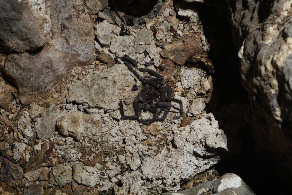 Все нижче і нижче і нижче. Спускалося, до речі, досить просто. На наше щастя я йшов першим, а Даша з фотоапаратом ззаду. Оскільки печера з озером і повністю без вітру, рівень води можна помітити тільки кидаючи камінчик вперед. Я ще думав, як краще зістрибнути з каменю або обійти зліва. Добре, що я вибрав обійти, якби вирішив зістрибнути, то по шию пішов би у воду. По поверхні водної гладі пішли хвилі. Так, із цією печерою розібралися. Зараз сходимо до другої і повернемося ще сюди. З другою печерою ми були вже розумнішими, перевіряли камінчиками, щоб не виявилося раптової води. У другій печері ми спускалися справді багато та ефектно, десь пролазили майже на животі, десь доводилося живіт втягувати. Бачили цікаві зеленого кольору мінерали, іноді підлога іскрилася найдрібнішими кристаликами. Ефектно вдалося одними ходами спуститися, а іншими піднятися. Правда знайдений розвалений на частини здоровенний павук нас трохи напружив. Це ж його хтось ще й переміг у цій печері. А тепер го екстремалити! Ми знову спустилися в першу. Встановили ліхтарики в скелях і попливли напівтемним підземним озером.