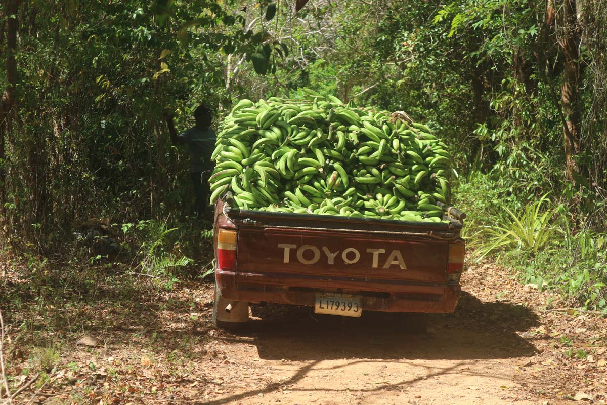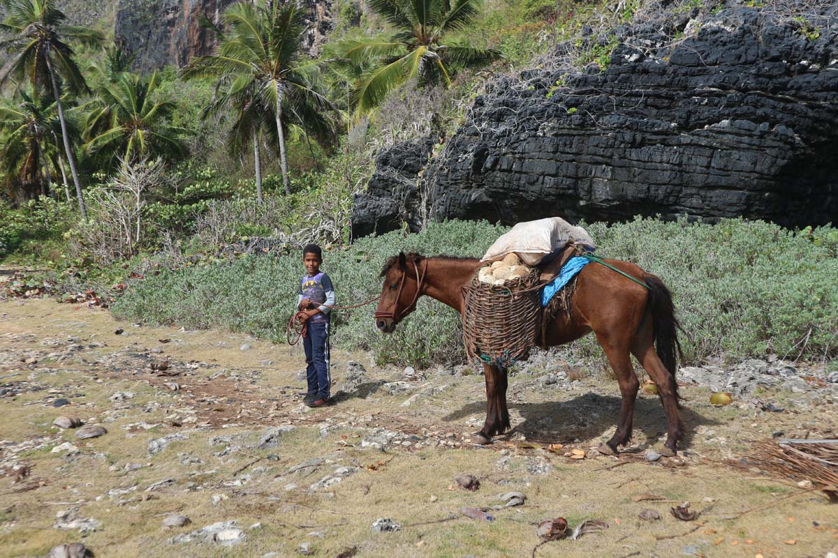 Хоча було справді високо. Загалом це місце, де Домінікана вже не така ласкава та райська. Мотоцикліст запитав: “Ну, що їдемо назад?”, але ми ще спочатку пояснили, що тільки в один кінець. Ми вирішили влаштувати собі справжнє сафарі дикими джунглями, пройти кілька годинний маршрут до одного з далеких пляжів. Хлопець намагався нам донести, що це небезпечно і робити це не варто. Паралельно приїхала екскурсія квадроциклами. Наш водій пішов поспілкуватися із гідом про нас. Підійшов гід, який на відміну від мотоцикліста говорив англійською і уточнив чи ми збираємося самі підкорити джунглі. Гід сказав, що це небезпечний маршрут. Я сказав, що ми знаємо. Насправді ми не знали, але буквально в кожній поїздці ми чуємо цю фразу по кілька разів. В основному всі переживають, як це ми у спортивних сандалях збираємось підкорювати гори, спускатися в ущелини тощо. Ну чи на крайняк якісь дикі тварини, але така зустріч з досвіду малоймовірна. Гід, наприклад уточнив, чи знаємо ми дорогу, але я бачив стежку і очима і на офлайн карті. Загалом ми зробили висновок, що переживають за те, як ми йтимемо лавовими скелями. Попрощавшись із людьми, ми вирушили стежкою вглиб. Можливо, якби ми знали іспанську трішки краще за нуль, то зрозуміли б попередження мотоцикліста “Цей маршрут небезпечний тим, що на туристів у джунглях нападають із мачете…”. Тим часом ми йшли крізь бананові гаї, бачили ананасик. Пробували зірвати зелений банан – гидота рідкісна. Бачили, як хлопчик повів коня завантаженого кокосами. Гід уточнив, чи знаємо ми дорогу, але я бачив стежку і очима і на офлайн карті. Загалом ми зробили висновок, що вони переживають за те, як ми йтимемо лавовими скелями. Попрощавшись із людьми, ми вирушили стежкою вглиб. Можливо, якби ми знали іспанську трішки краще за нуль, то зрозуміли б попередження мотоцикліста “Цей маршрут небезпечний тим, що на туристів у джунглях нападають із мачете…”. Тим часом ми йшли крізь бананові гаї, бачили ананасик. Пробували зірвати зелений банан – гидота рідкісна. Бачили, як хлопчик повів коня завантаженого кокосами.