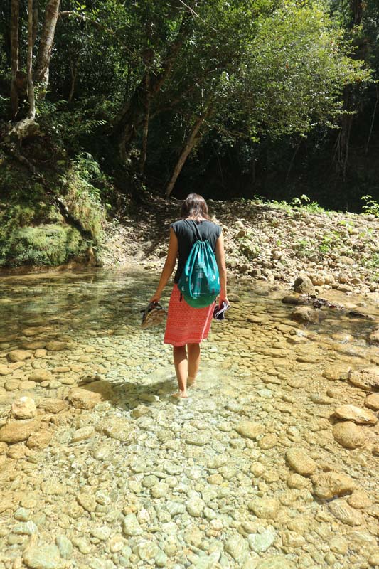 Доки Даша остигала на лавці в тіні, я здійснив героїчний похід за водою до того самого охоронця. На щастя, там була стежка джунглями. Сонце набирало сили, а море краси. Вода світилася яскравим бірюзовим непрозорим кольором. Я при охоронці залпом випив півлітрову пляшку і набрав ще одну з собою. На цей маршрут із собою потрібно було брати кілька літрів не менше. Але завжди можна було охолонути у морі. До печери маршрут тривав хвилин 40 крізь справжні джунглі з різними дивами.