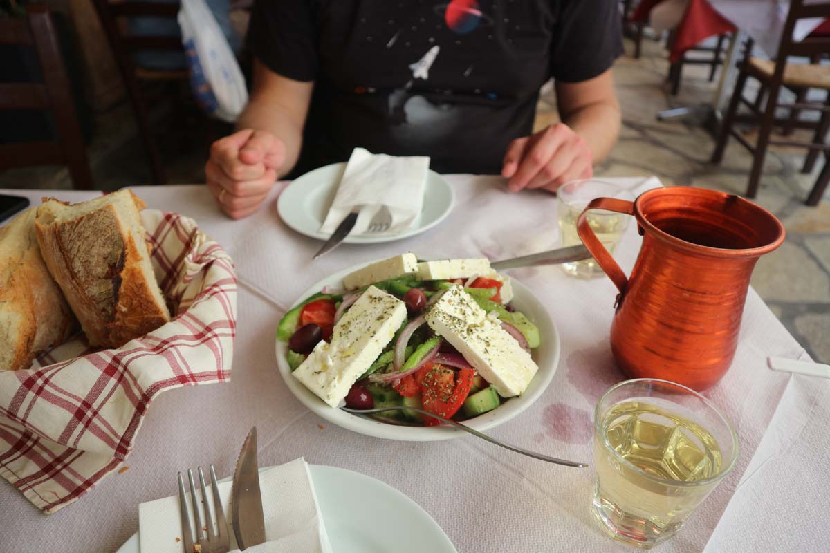 Греція взагалі не така, як я в дитинстві уявляв! Сподіваюся, хоч грецький салат тут є? На щастя з усього перерахованого вище саме грецький салат тут є, причому у всіх ресторанах. Фуххх, можна видихнути. Якщо відсутність колон і глеків на головах ще можна пережити, відсутність грецького салату було б сильним ударом.