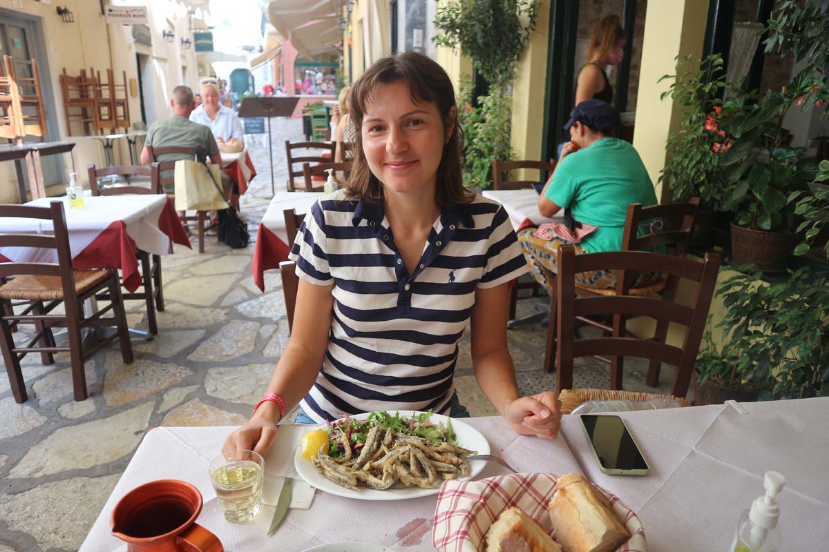 До чого я все це описую. Моя подруга кілька років тому потрапила у цілком ідентичну ситуацію на цьому ж маршруті, на цьому ж кораблі. Я чудово пам’ятаю, як вона описувала всі ці страхіття. Перед тим, як плисти в Грецію добре оцініть спокійність моря, прогноз сили вітру і по можливості заплатіть дорожче, але пливіть на “дельфіні”, а не звичайному кораблі. Він тут теж ходить і має свій розклад. Не повторюйте нашу помилку. Не повертайте смачну грецьку їжу назад у море)