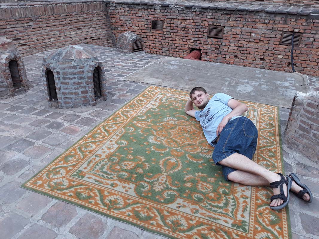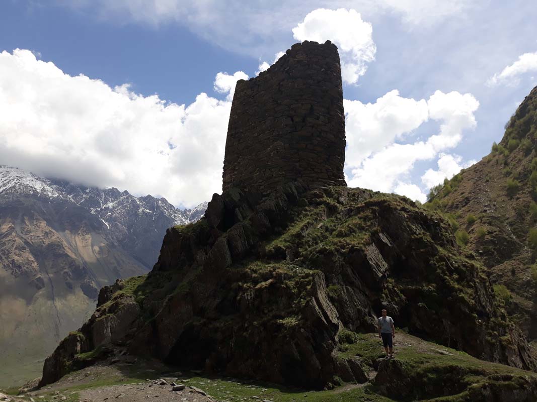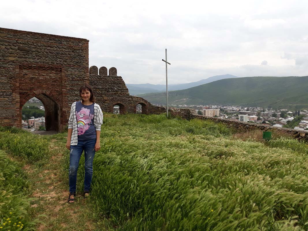 У Горі була ще й фортеця. Перед підйомом ми вирішили підкріпитись. Але у найближчій кафе Хінкалі було чекати 20 хвилин. Ми вирішили спочатку взяти неприступну фортецю на горі, а потім бенкетувати взяття. Під час підйому ми виявили приховану стежку. Стежка вела нас між стіною та високим урвищем. Знизу людям могло здаватися, що два шпигуни намагаються хитрістю взяти фортецю. Фортецю, до якої безкоштовний вхід і вона постійно відкрита. У результаті ми прийшли до місця, де урвище було вже з усіх боків. Внизу виднілися скульптури-велетні, що сиділи у колі. Здається перша спроба взяти фортецю зазнала фіаско! О, придумав! Новий план! Ходімо з парадного входу! Там вони нас точно не чекають. З парадного входу взяли фортецю з першого разу!