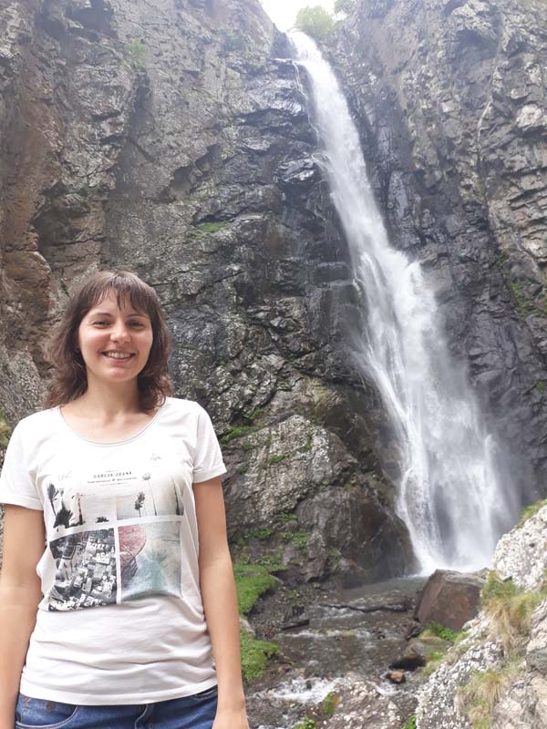 пивний келих… 0,5… налитий по-аптекарськи до країв. Звичайно перед тим як нам налити вино, господар налив нам грам 100 – 150 на дегустацію. Вино ще йде так приємно, як сік. Ми з Дашею боялися стати на ноги зі столу. Ще й водоспади шукатимемо. Хазяйка вибігла надвір, і сказала, що там є хлопці, які з радістю нас звозять на водоспади до сусіднього міста. У хлопців було у розпалі пивне гуляння. Чоловік сказав, що за 50 ларі з радістю нас звозить туди-назад. Ми розпочали торги. Він аргументував, що у ціну входить пиво. Торги увійшли до рекордної для нас суми: “Ви ж наші гості, я вас взагалі безкоштовно повезу! Ви готові?” Грузин допив келих пива, посадив нас у бус і взяв маршрут на гори. З одного боку, звісно, пиво перед поїздкою не дуже. Але, з іншого боку, він же корінний грузин, можливо, це його спосіб бути в нормальному стані. Дорога скінчилася. Нашого водія це не зупинило. Він почав їхати в гори маршрутом для джипів. Бусик трясло настільки сильно, що в мене рука потім боліла. Так сильно тримався за сидіння. Якоїсь миті машина здалася і далі ми з Дашею пішли пішки. Наш вершник залишився чекати нас у свого залізного коня. До водоспаду було йти хвилин 20. Ми вибрали маршрут на Великий водоспад.
