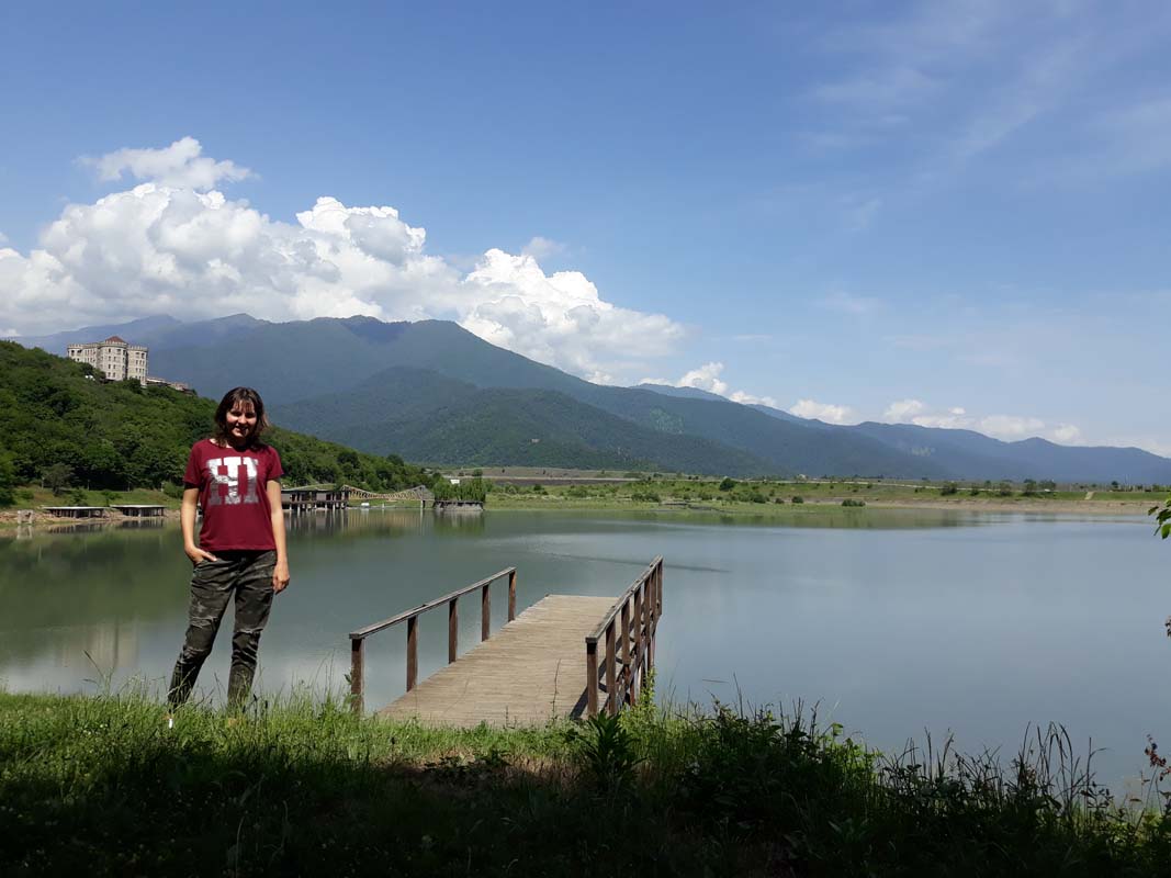 Наш третій та, на жаль, останній день. Він буде таким самим прекрасним і радісним, як і попередні. Чому в нас так мало днів у такій чудовій країні? Так прилітаємо додому та беремо квитки на наступний рік! Водій нас поправив, мовляв, беріть на осінь, якраз виноград постигне. Цього ранку ми з великою впевненістю поїхали не на той автовокзал. Поїли, і через все місто поїхали на потрібний. Ми планували ще раз їхати до Боржомі. Але всю західну частину Грузії заливали зливи. Значить поїдемо до Сігнагі, там було дуже круто. Водій маршрутки нам нагадав, що в Сігнагі треба їхати з пересадкою на попутки. Запропонував нам відкрити щось нове. Сказав, щоб ми їхали з ним у Кварелі, там гарно, гарне озеро та туристи теж туди їздять. Ну ок, Кварелі так Кварелі. Уперед! Їхали ми близько трьох годин. Складність дороги була максимальною. Три години ми слухали рашистський шансон із радіо у водія. До озера треба було йти дуже дивними недобудованими кар’єрами. Озеро мальовниче. Шкода наш фотоапарат у ремонті.
