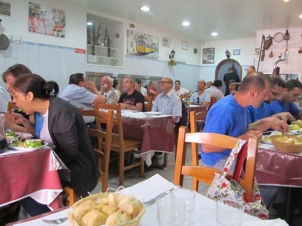 Ресторан тримав чоловік похилого віку, який у ньому ж і працював одним з офіціантів. У ресторані сиділи лише місцеві, всі столи були зсунуті так, що всі сиділи великою португальською родиною. Ми з незвички сіли за сусідній столик. Нам тут же принесли набір стартових закусок, кошик хліба, олію, тарілку оливок та голівку сиру схожого на брі. Такі набори оплачуються окремо за фактом того, що з того ти їв. Меню було, як і скрізь, переважно рибне, тут ми й пішли екзотикою. Першим гостем нашої програми була риба шпага з вареною картоплею та салатом. Розмір порції порадував, поки ми трапезували шпагою, дідусь нам приніс восминіжка та пивко, причому подаючи страви він щоразу примовляв “Yeah!” На щастя, приймаючи замовлення він нас пощадив, це були лише половини порцій і то до кінця ми здолати не змогли, хоча голівку сиру всю закінчили. Але як же всі душевно трапезували! Було дуже смачно. Насамкінець нам принесли рахунок на 13 євро. Ця трапеза була цілим культом португальської культури. Невдалий старт відразу забувся. Тільки заради трапези у цьому ресторані можна летіти до Лісабона. Ресторан називається Super Mario, знаходиться недалеко від площі Largo do Carmo.