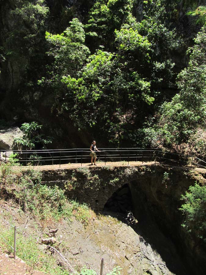 З самого ранку ми вирушили на наступний маршрут. Це був великий реліктовий ліс, який зберігся з часів динозаврів. На нашому досвіді це вже другий ліс, перший був на Канарських островах. До Рібейро Фріо можна доїхати міським автобусом (по 3,5 євро з особи), що робить цей маршрут таким же доступним, як і попередній. Приїхавши на точку старту, ми виявили нереальні натовпи туристів-пакетників, невеликий парк та басейни та рибою. Від такої концентрації людей ставало лячно, на відміну від попереднього мису тут була купа магазинів та ресторанів.