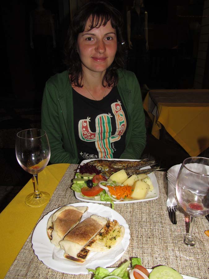 Сходження ми відзначали рибою Дорадою та ігристим вином. На десерт їли шедеври місцевої кондитерки. Провівши в місті пару годин гуляючи зеленою зоною та затишними вуличками ми вирушили на зупинку з тим нерозбірливим розкладом.