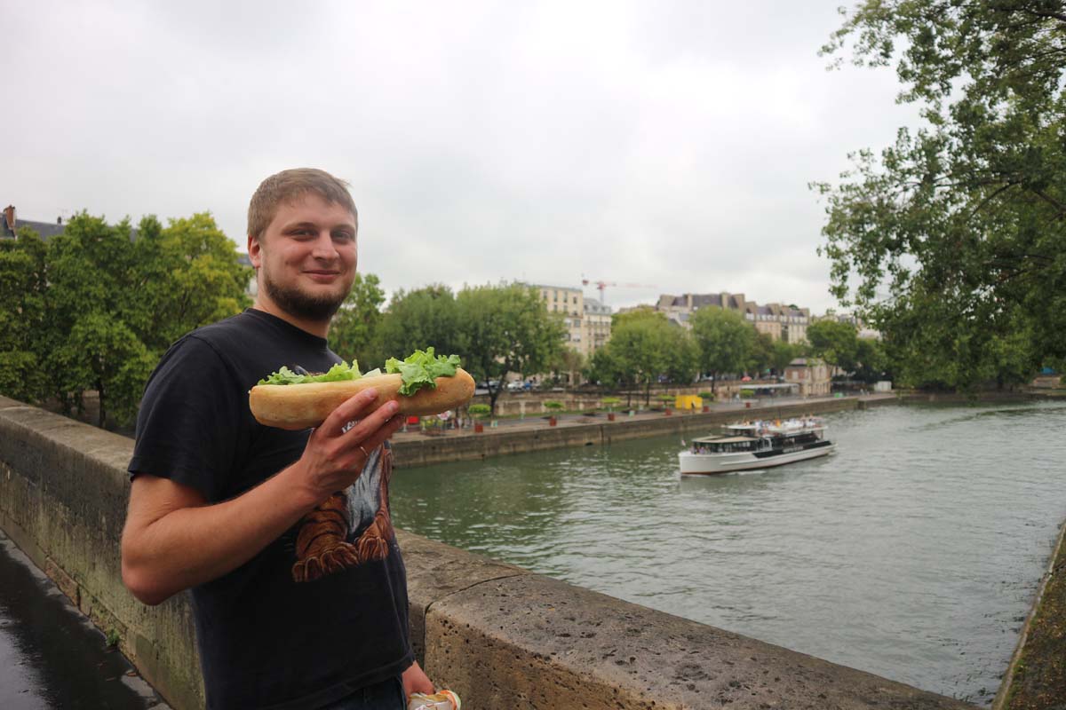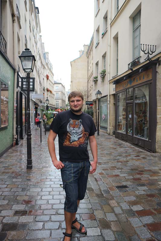 Вийшли неподалік історичного району. Поруч річка та острів з якого відкриється вид на Нотр-Дам де Парі. Собор виявилося не видно, зате я перший вдалині побачив шматочок Ейфелевої вежі. Але на острів ми не дарма пішли. У пекарні ми купили багет-сендвіч та найсмачніший брауні у Галактиці. Це було незабутньо. Люблю гастрономічність у поїздках. Не зрозуміло, навіщо вони винаходили круасани, коли вміють робити настільки смачні брауні. Район Маре спочатку здався звичайнісіньким житловим кварталом. Але заглиблюючись у його вулички починаєш отримувати ті відчуття, завдяки яким людям подобається Париж. Вулички Парижа – це прекрасно.