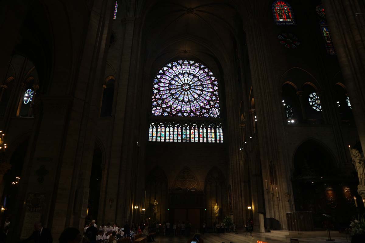 Наступною точкою маршруту був острів зі знаменитим на весь світ собором. Черга в Нотр-Дам де Парі вражала, зате швидко рухалася. Саме час було зробити сотню фотографій. Насправді сама краса розкривається не з боку фасаду, а із задньої частини собору із затишного тінистого парку. Дуже радіємо, коли бачимо відомі світові пам’ятки. Усередині самого собору дуже вразили вітражні вікна.