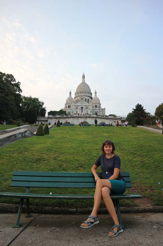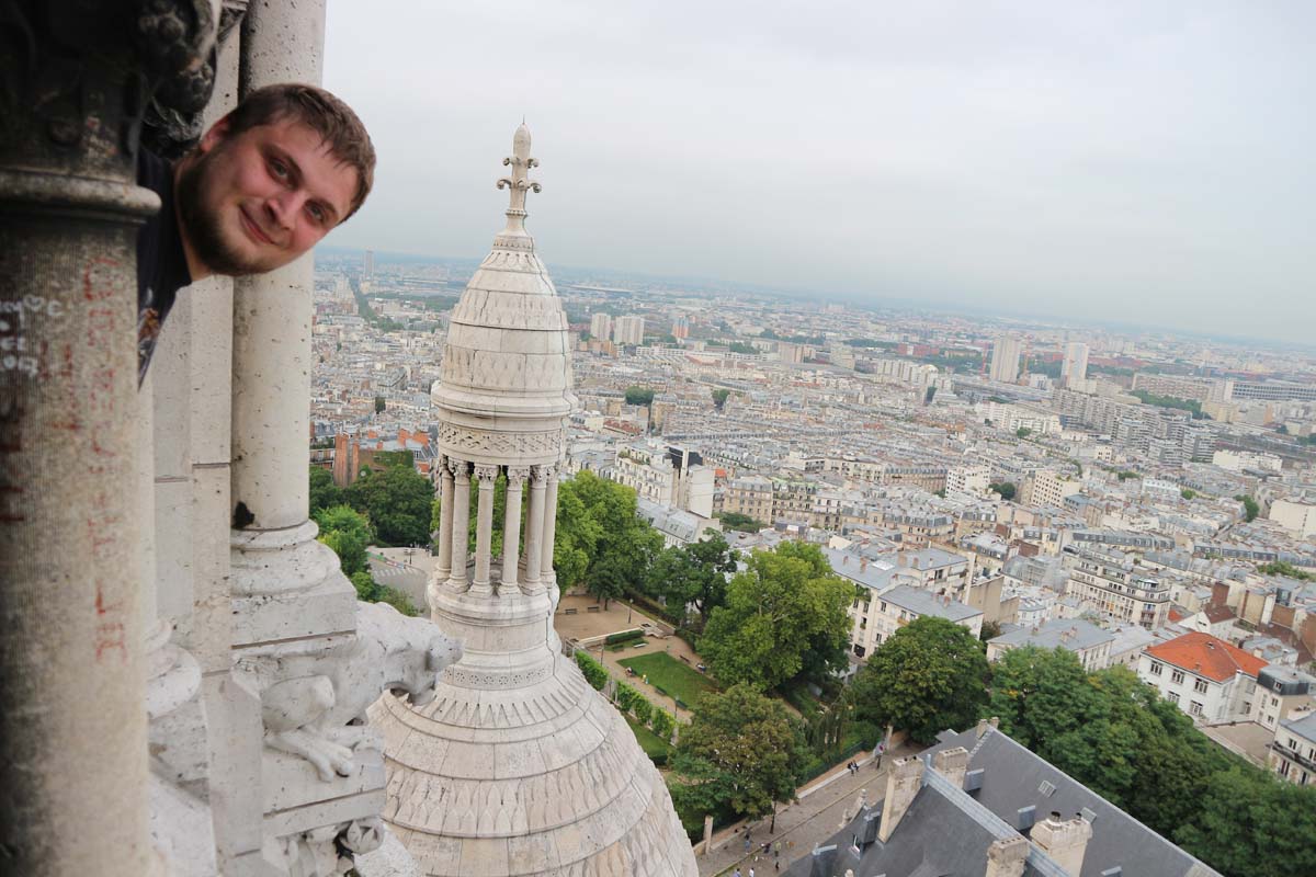 Вийшли із метро в іншому кінці міста. Нас оточили прекрасні вулички. Для початку потрібно піднятися на пагорб і відвідати базиліку Сакре-Кер. Своїм розмахом базиліка вражає майже так само, як і Нотр-Дам. Схоже, що коли будували, насамперед акцент робили на розмірах. Тепер, щоб побачити Париж з висоти треба піднятися на одну з веж. Спочатку ти платиш близько 7 євро, а потім тобі дівчина радісно повідомляє, що потрібно пройти 300 сходинок нагору. Я ледве непритомним не впав від перспективи.