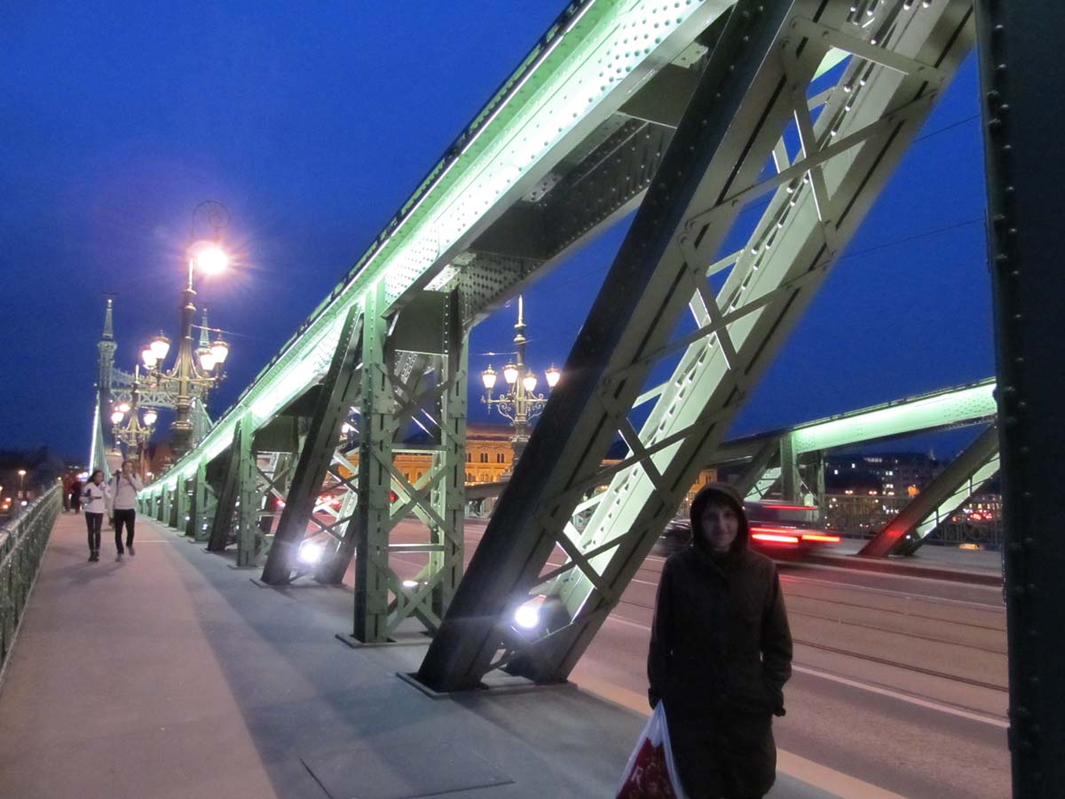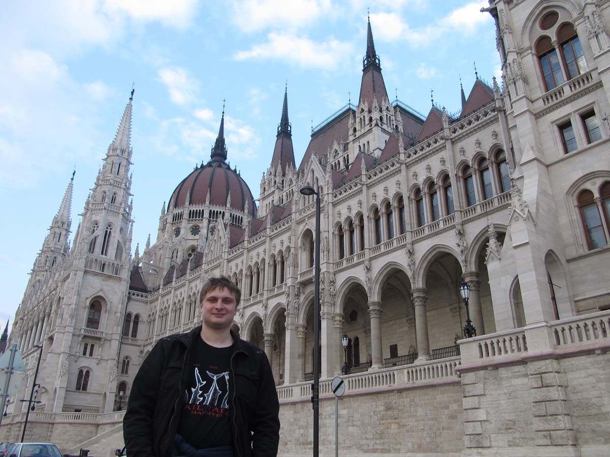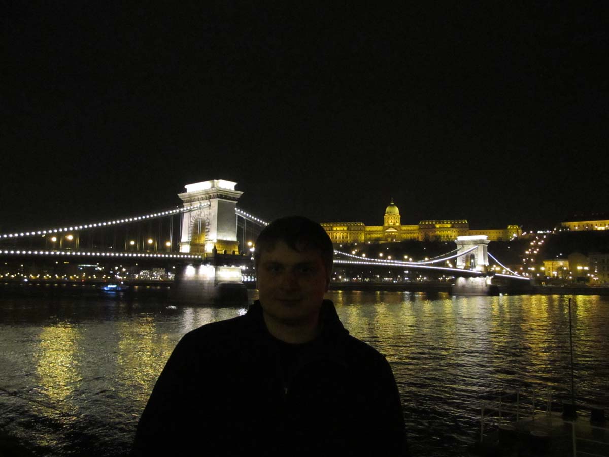 Я десь читав, що у Європі їжа дорога, але великі порції. З ціною не посперечаєшся, реально дорога, але з розміром порцій тут трохи проблема, наїстися угорськими порціями зовсім неможливо. Тут нам на допомогу прийшли турецькі кафе, їх дуже багато, їжа така ж смачна як у Туреччині, а ціни набагато нижчі. Загалом угорську кухню ми пізнали через турецьку. Але все ж таки була одна угорська кафешка, в якій платиш за вхід, а далі ол інклюзив. Тут ми вже відірвалися за всі дні. Коли ми підійшли до офіціантки, їй на вухо щось шепнув інший офіціант, після чого в дівчини почався істеричний сміх. Сміялася вона про щось своє, але як же цікаво про що саме, які два угорські слова було достатньо сказати, щоби настільки розсмішити? Почекавши якийсь час, дівчина заспокоїлася і почала відповідати на наші запитання. Слова ставали дедалі невпевненішими, по тілу йшло невелике тремтіння і тут новий вибух сміху, та такий, що офіціантка підносом затуляла обличчя. Нас у результаті покликала інша та обслужила. Найближчі хвилин 20 ми за трапезою спостерігали як бідна дівчина буквально вмирає від сміху та не може заспокоїтись. Що ж, непогана анімація вийшла. Потім скайпом Миші розповідав, що смачно їв баранчика Шона. Перший вечір ми провели, гуляючи набережною Дунаю з боку Пешта. Ми познайомилися з численними мостами міста та парламентом, що не кажи, а мости гарні.