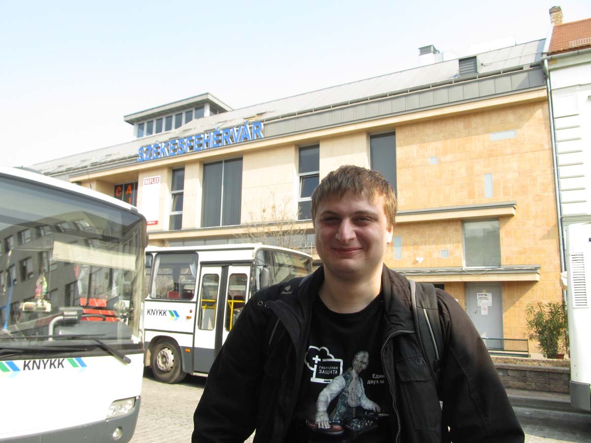 У Києві сніг, а в нас тут сонечко. Коли ми чекали зворотний автобус, дідусь угорець підійшов і почав нам розповідати коротку історію країни красивою угорською. Коли ми намагалися йому сказати, що говоримо тільки англійською, його це не на мить не збентежило і він продовжив гнути свою лінію угорською. Чому саме історію країни? Бо розповідав її довго і виразно. Через 40 хвилин підійшов автобус, і ми поїхали назад до міста зі складною назвою. Через зупинок 5, до автобуса зайшов той самий дідусь, з першої зупинки, він походу ще й маг. На цей раз він позбавив нас необхідності слухати його історію. Повернувшись на автовокзал і забравши залишені речі, ми вирушили далі.