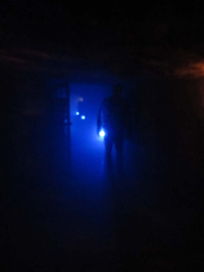 У наступному абзаці розкриваються деталі лабіринту, якщо хочете пережити все, не знаючи деталей, пропустіть абзац. Спочатку в напівтемряві ми ходили підземними закутками, по боках були різні інсталяції на тему королівських сімей. А ось далі світло зовсім зникло, і ми були в повній непроглядній темряві. Уздовж стіни висів канат, за який можна було триматися, щоб коригувати свій маршрут. Крізь густину абсолютної темряви проглядалися елементи в стінах, що майже не світилися. Причому на них погляд неможливо було сфокусувати. Далі почало долинати капання води і ставало справді трохи моторошно. Я найбільше переживав, а раптом так не задумано і просто перегоріли лампочки. Після десятихвилинного блукання по темряві, ми вийшли в напівтемряву. Одна рука була мокра, бо десь у темряві вліз у воду. Карта на стіні показувала, що все тільки починається. На стінах висіли розповіді та факти про графа Дракулу, а з-за закутків почали долинати зловісні звуки. Потім почали з’являтися відрубані голови на списах. З-за повороту почав долинати дитячий хор, за поворотом надгробок і в тумані видніється труна, з іншого боку висить клітка для тортур ув’язнених. Звісно я вирішив влізти в клітку, але варто в неї зайти, як двері за інерцією зі скрипом зачинилися, я з розвороту спробував штовхнути не ті прути і склалося враження ніби я зачинився з кінцями.