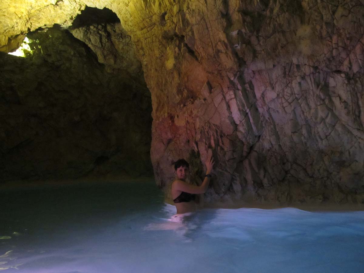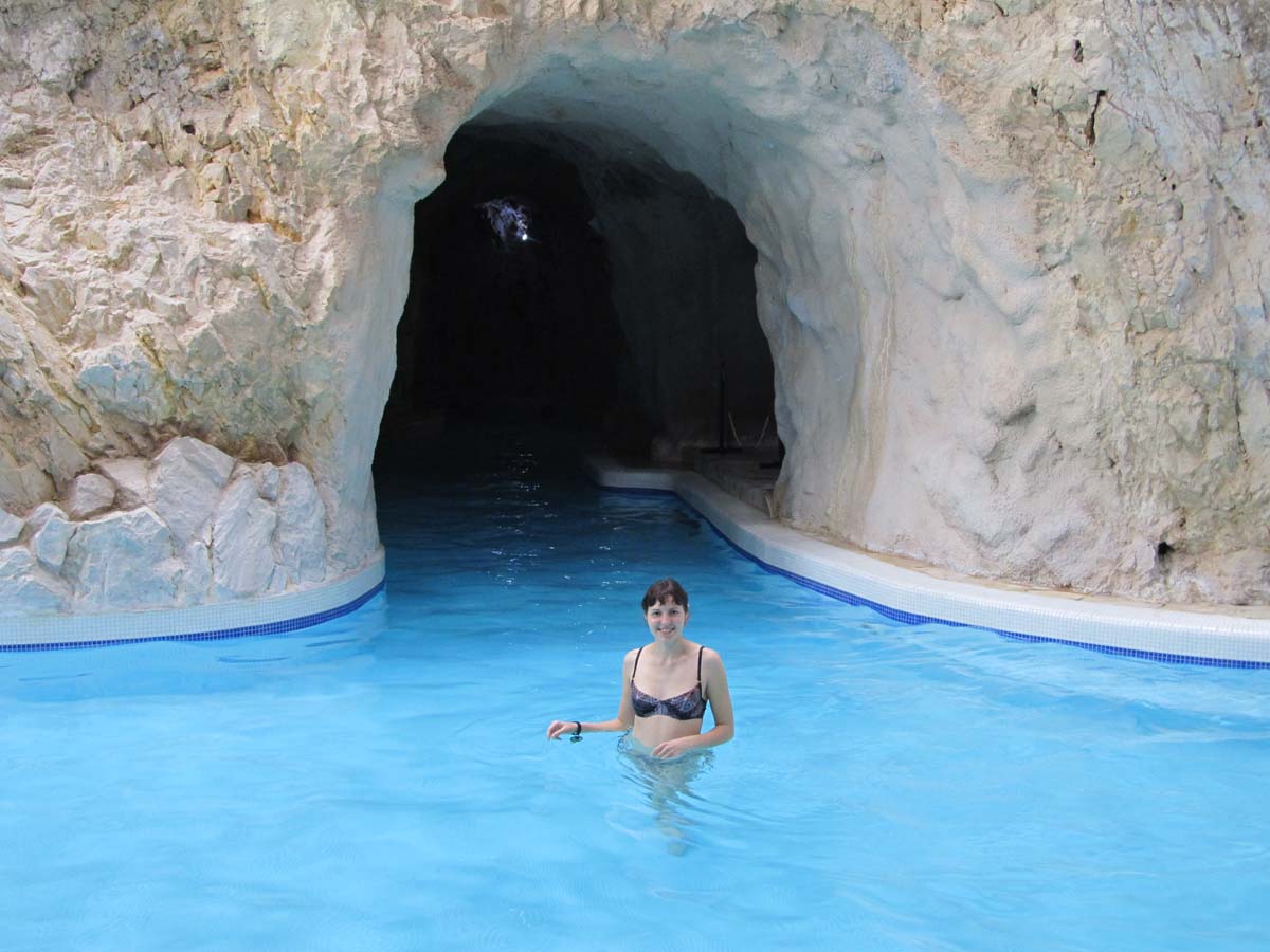 Поплавати у воді серед печерних лабіринтів раніше не доводилося. Найбільше сподобалася печера, в якій була темрява, а на стелі висвітлювалися ультрафіолетом зірки та місяць. На жаль, ці купальні не надто великі, ми там пробули максимум годину. Загалом найефектніші з усіх відвіданих – це озеро у Хевізі. Чого тільки наш фотоапарат за поїздки ще не переживав, буквально пів року тому його заливало бразильським водоспадом, а тепер він плаває з нами в печерних купальнях. Із запотіванням об’єктива спочатку боролися, протираючи його мокрими пальцями, потім пов’язкою з волосся, потім забили. Ось наскільки Canon вміє робити довговічними фотоапарати. Планшет також пройшов бойове хрещення.