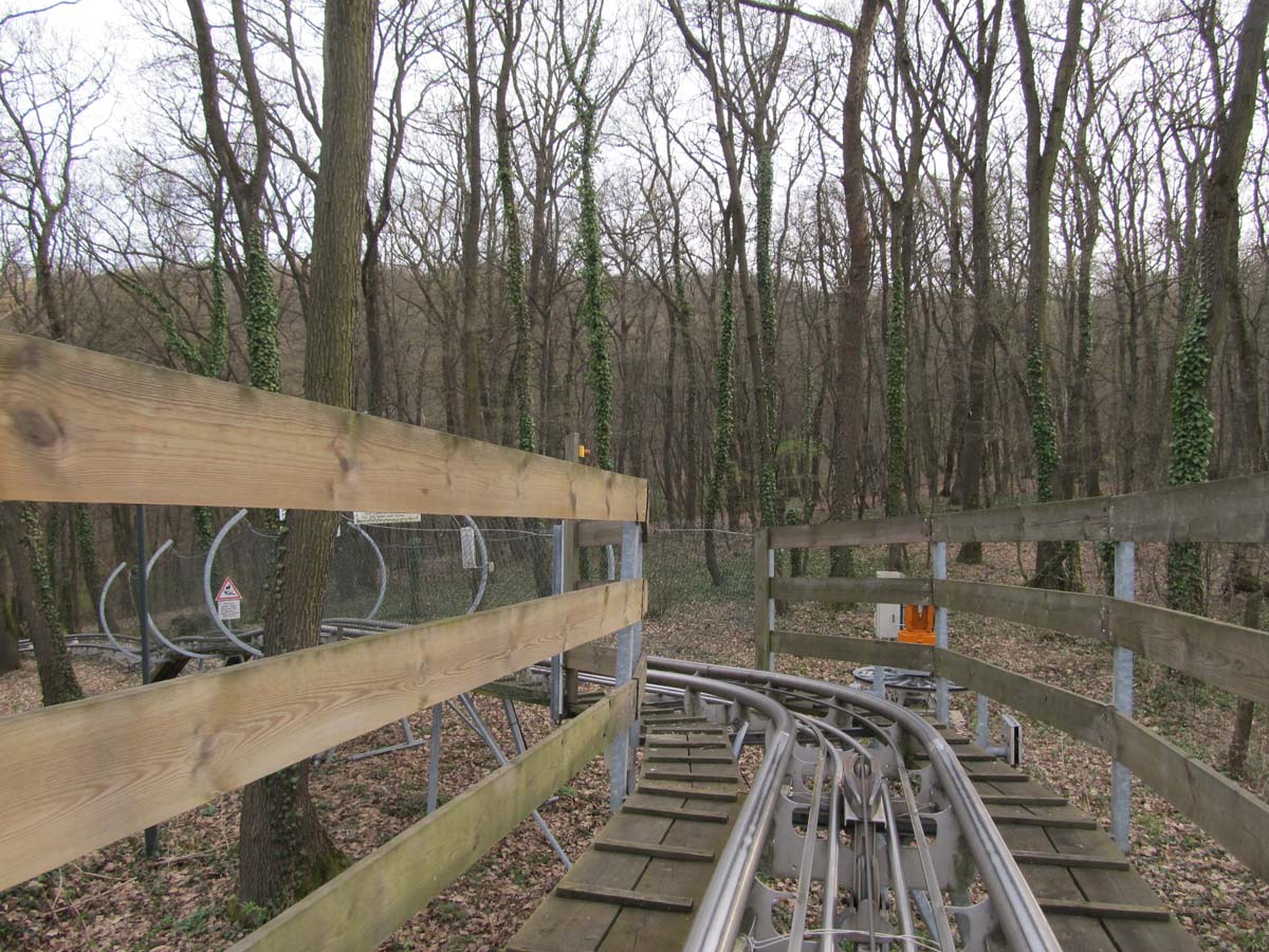 Навколо купалень був чудовий парк, парки ми любимо. Щоби наші речі не вкрали, ми за болівійською традицією попросили незнайому угорку стежити за ними. Тут висновок був логічний, ми поїли в її кафе, вона готує смачно і накладає великі порції, значить хороша людина! Начитавшись інформації з угорських банерів, я з нею навіть зміг домовитися, що ми буквально залишимо на годинку. Гуляючи парком, ми не підозрювали, що найцікавіша розвага цього міста у нас ще попереду. Вдалині з’явилися металеві рейки, що вивертаються в різні віражі, але вони були настільки низько над землею, що здавалося, що це просто щось недобудували. Підійшовши ближче, ми побачили застереження, що катання на бобслеї на ваш страх і ризик. Цікавенько, підходимо ближче, якісь механічні лежаки на рейках та працівник. Воно працює! Сідаю я в бобслей і мене починає трос тягнути рейками в гору.