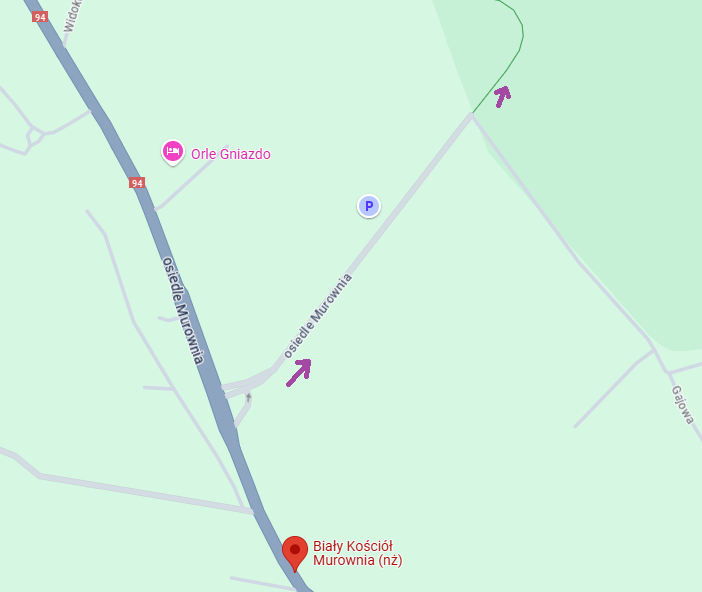 Варіанти маршруту: На автобусі доїхати до зупинки Biały Kościół Murownia, звідти по асфальтованій мальовничій дорозі через ліс спуститись у парк.