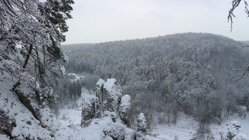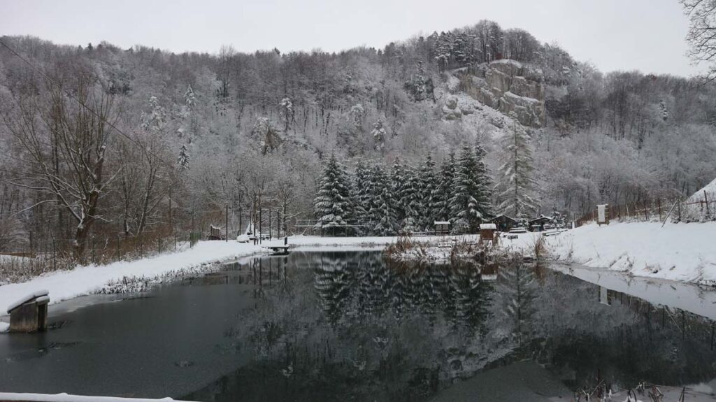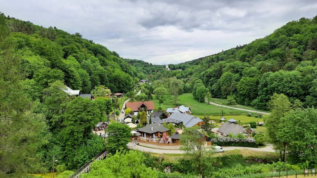 У парку можна прогулятись вздовж гори у напрямку кафе “Pod Puchaczówką”, за кафе піднятись на гору й пройти маршрут з оглядками зверху до спуску. Час підйому до 30 хвилин. Після спуску рухайтеся у напрямку замку через зону ресторанів, що буде з лівої сторони від річки.