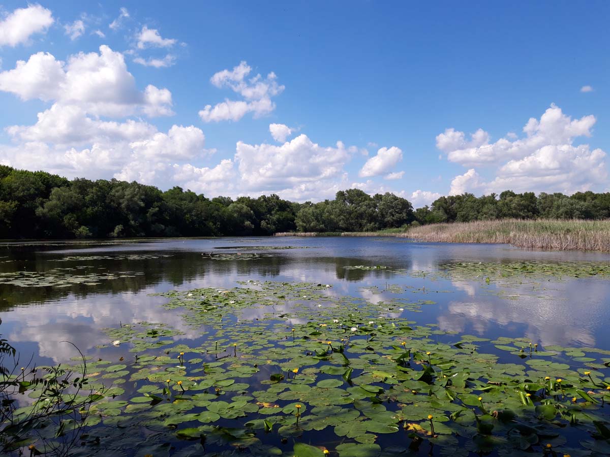 Перший сонячний день закінчився наймогутнішою грозою з гарними блискавками. З острова ми бігли, як під час апокаліпсиса. Другий день ми почали з відвідування авіаційного музею Мотор Січ. Сам музей має досить високий рейтинг. Але особисто нам він не надто зайшов. Екскурсії для невеликої кількості людей не проводять, експонатів мало і немає інтерактивності. Мабуть, ми просто розпещені сучасними музеями. А можливо, екскурсія могла б все змінити. Натомість у дворі перед музеєм купа різної техніки, де можуть полазити діти. Потім у нас було відвідування парку Дубовий Гай. Там у принципі непогано постріляли у тирі, поїли смачного морозива. Навіть майже поплавали на катамарані, доки не дізналися, що пів години коштує 150 грн. Чи то нулик у ціні був зайвий, чи це антикризові такі заходи. Загалом, це все не Хортиця. Такс, швиденько обідаємо і назад повертаємось на острів. Сьогодні ми заїхали на таксі в таку глушину, що таксист переживав, як він назад поїде. Це місце називається “Хортицькі плавні”.