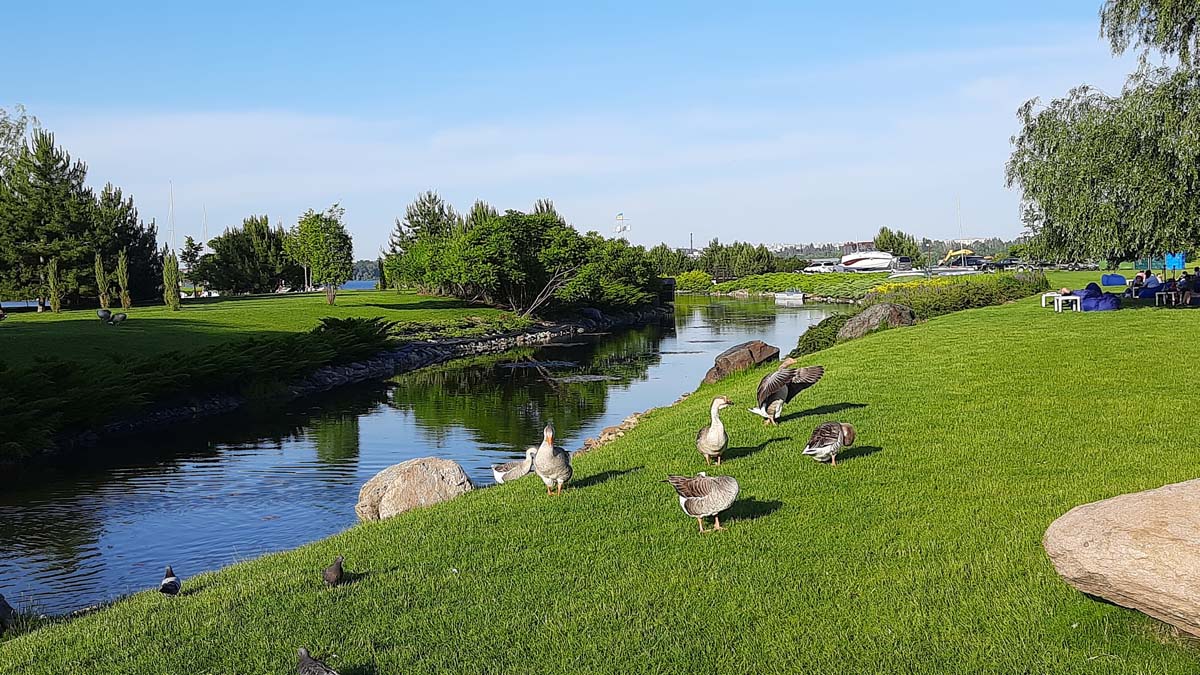 Тут тобі й павичі-альбіноси, крокуючі загони гусей та решта живності. Це місце складається зі сполучених острів. Люди відпочивають на зелених соковитих галявинах, сонечко гріє, що ще для щастя потрібно? Я навіть не міг зрозуміти як би і тут погуляти до нескінченності і не пропустити черговий вечір на набережній.