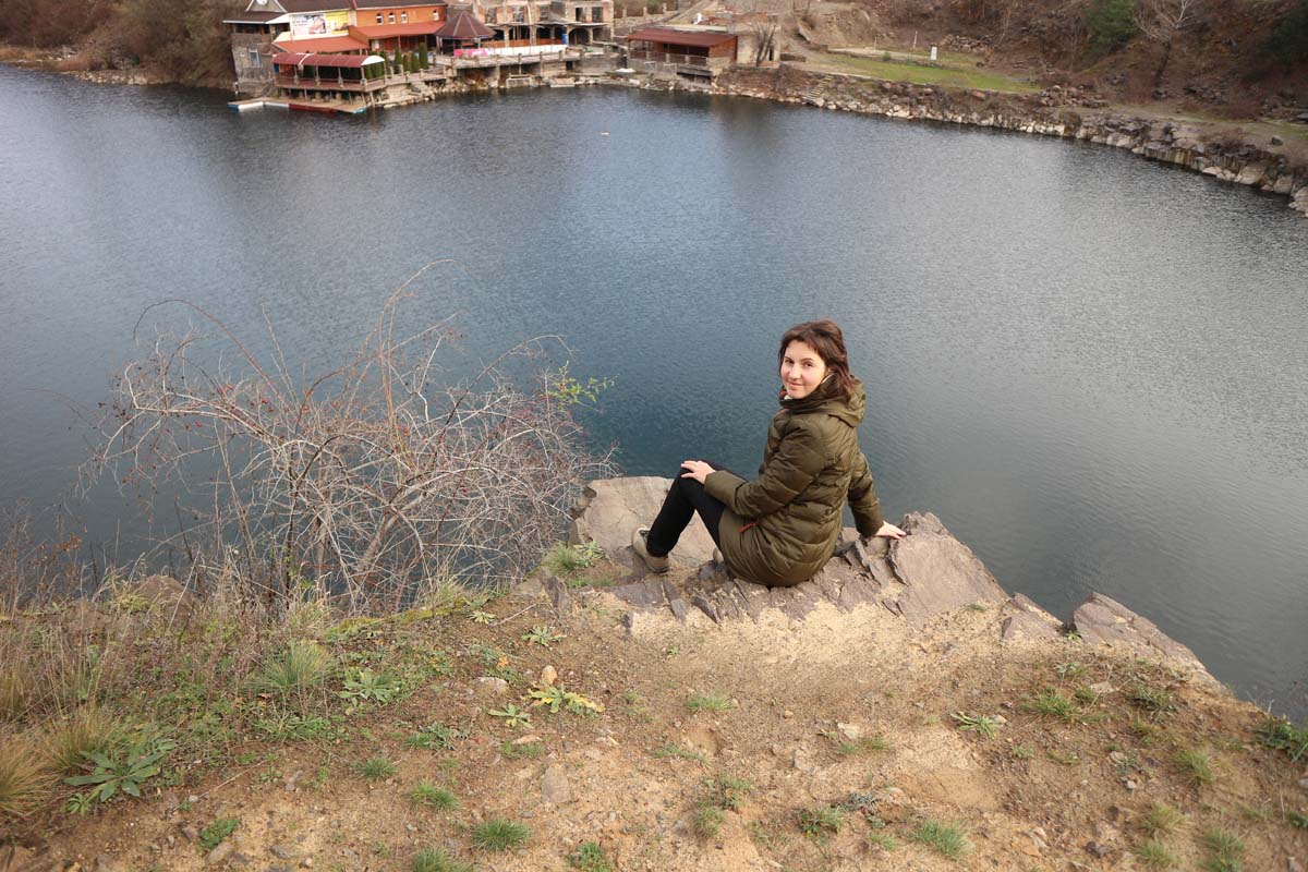 Із самого ранку ми вирушили на великий кар’єр. Дочекатися маршрутки рано вранці закінчилося так само провалом. Але кар’єр за київськими мірками був зовсім не далеко. Півгодинна ранкова прогулянка була якраз. Перед кар’єром зайшли до місцевої розливайки випити чайку. За стіною грала дискотечна музика з нехитрим текстом. “Патімейкер, шейкер-шейкер” Поки чайник закипів, місцевий патімейкер начисто вигнав з голови мексиканця в Х’юстоні разом з Нью-Йорком. Сам кар’єр ми довго не могли знайти і ходили колами, хоч у нас була карта з GPS. 7 років тому ми дісталися без жодних технологій, не блукаючи. Озеро було, як і минулого разу, шикарне.