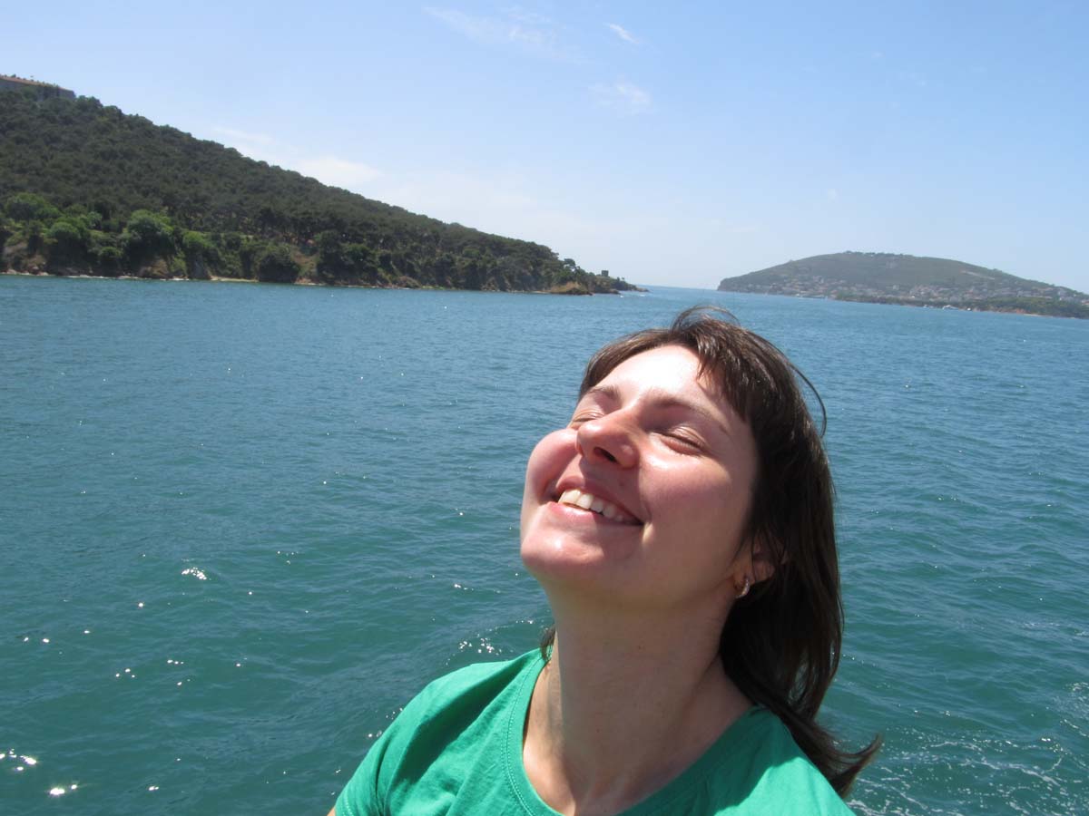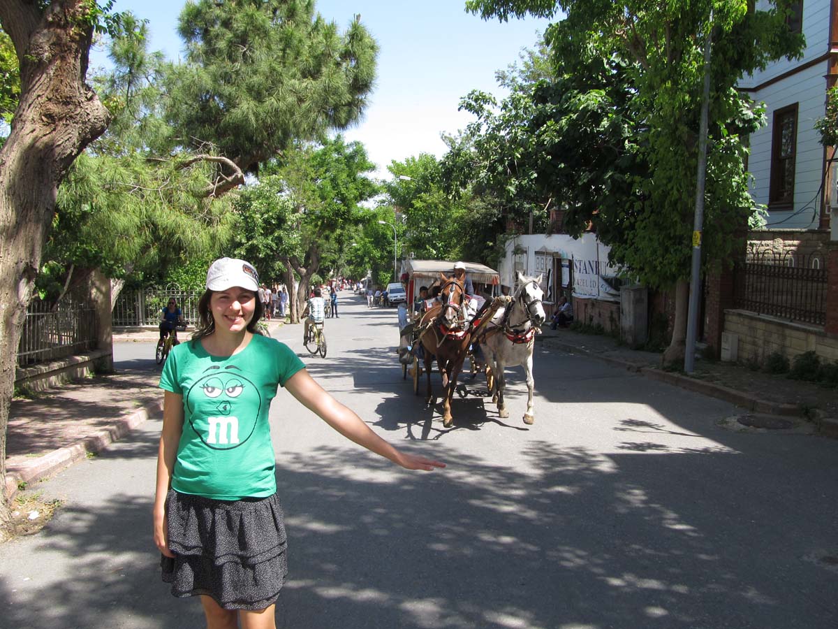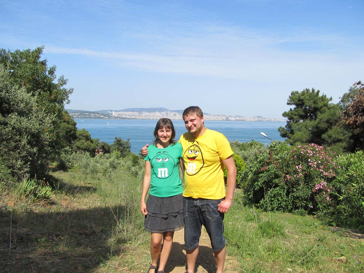 З ранку ми вирушили гуляти набережною. Багато турків засмагали на кам’яних брилах, а деякі навіть купалися. Іноді на камінні грілися котики. Набережною було трохи важко йти проти сонця. Зате вздовж міської старої стіни. Цього дня ми попливли на Принцеві острови. На найбільшому ми вже були рік тому, цього разу взяли другий за розміром.