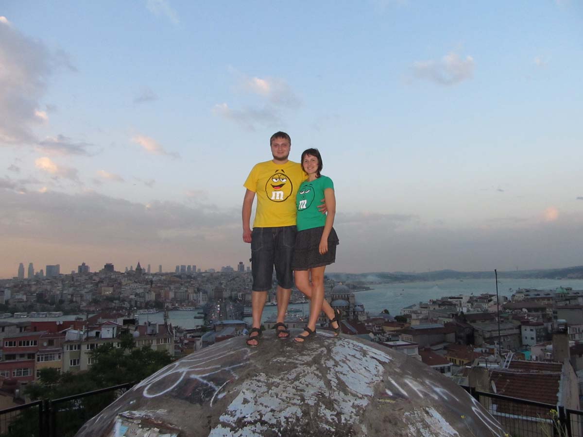 За кількагодинний переліт ми встигли облетіти грозу. Це був перший раз у нас в історії, коли ми з ілюмінатора бачили грозову миготливу хмару. Після прильоту до Стамбула мій новий паспорт отримав свій перший штамп. Справа була ввечері і насамперед після прильоту ми вирушили скуштувати одну з найкращих кухонь світу. Раніше, коли людей було побільше, а терактів по менше, кафешки навіть опівночі працювали на повну силу, а зараз почали закриватися набагато раніше. Загалом у зв’язку з терактами багато хто насторожено ставився до нашої витівки зі Стамбулом. Але за фактом за час нашого перебування повз мене пролетів всього один коктейль Молотова і серед ночі пролунав вибух на іншому березі міста, та й постріл ми чули лише один раз, до того ж це могла виявитися просто петарда. Натомість із погодою цього разу пощастило по повній.