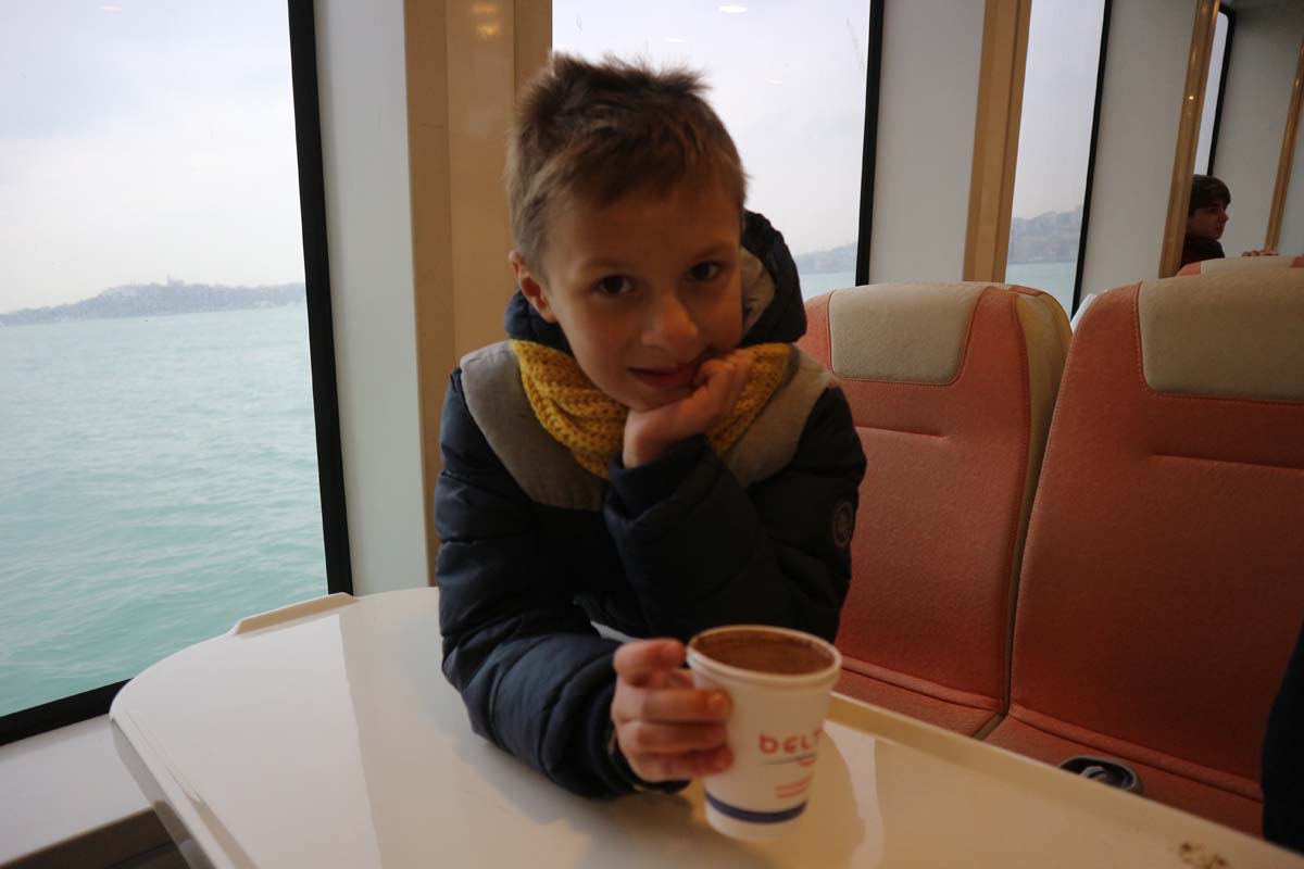 Після Єгипту, треба було посилено скидати набрані три кілограми перед черговим гастрономічним раєм. Встиг майже впритул) Ця поїздка була особливою, якось рік тому Мишко заявив, що готовий брати участь з нами у повноцінних поїздках зі складними маршрутами, а не лише де море та водні гірочки. Виклик був прийнятий, ми буквально в ті ж самі дні взяли лоукостівські квитки у МАУ. Рік йшов, ми з Мишком передчували подорож. Мишко вивчив схему метро та трамваїв Стамбула, вивчив основні станції, маркування ліній та розташування основних районів. Іноді брав стару роздруковану карту Стамбульського транспорту та домальовував нові збудовані гілки. Зокрема, Мишка цікавила підводна гілка. Другим важливим моментом для Михайла була гастрономічність поїздки: Безлімітні фреші, сахлеп і смажені каштани. З роботи довелося піти раніше. Записав швидко на папірець усі свої думки та ідеї того, що я хочу зробити і на чому зупинився по роботі. Тепер можна відлітати. Коли думки записуєш, ти начебто вивантажуєш роботу з голови і протягом поїздки думками до неї більше не повертаєшся. Пробки Києвом всіляко не давали дістатися всім складом до аеропорту. Але запас часу був достатній. Оскільки безкоштовна лаунж зона діє лише на власників банківської картки, то ми з Дашею ходили по черзі. Поки Даша їла в лаунжі, я Мишкові провів екскурсію бориспільським д’юті фрі, ознайомив з популярними закордонними товарами, які у нас не продаються. Потім була моя черга лаунж зони, а в літаку була Мишкова черга, тому що ми йому набрали смачненький звідти 😊