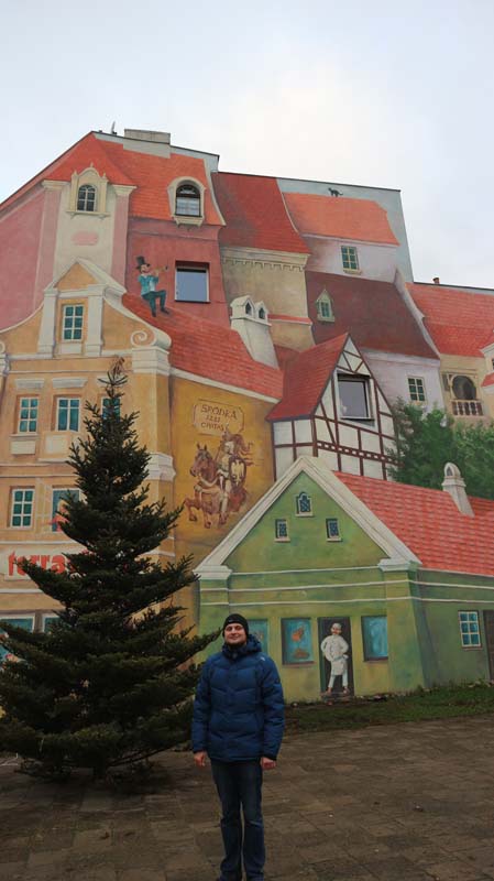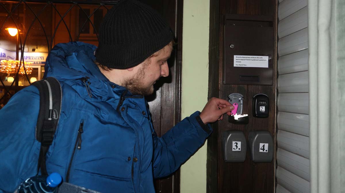 Відкрили скриньку, там ключик. З цим ключиком ми пішли до іншої адреси. Прямо біля дверей нашого під’їзду розташувався схоже найпопулярніший нічний клуб у галактиці. Туди була настільки довга черга з напідпитку, що навряд чи до ранку всі просочилися в клуб. Знайшли двері, загороджені натовпом з черги. Акуратно посунули натовп. Причому рухати треба було тактовно, щоб не спровокувати стіну на стіну. За натовпом на нас чекав черговий кодовий замок із замковим отвором просто у стіні. У мене був спеціальний код з описом, як саме його треба вводити, щоб підійшло. Мабуть, хазяїн вивчав криптографію. З першого разу не виходило. Люди давали поради польською про те, як мені перемогти цю енігму. Якоїсь миті нашим мукам настав кінець. Відчинилися масивні двері. Прохід у темний і неживий коридор зловісно нас манив. Зайшли до під’їзду, тепер ми шукаємо чергові двері 5B. Звичайно ж таких дверей не виявилося. Методом виключення визначили двері, черговий ключ підійшов. Тепер ми були в освітленому холі. Останні двері, останній ключ, що залишився, і ми в номері! Тепер можна спати, надворі ніч. Але почуття ритму і драйву нас не залишали до світанку. Клуб на першому поверсі грав усіма спектрами басів! Відчуття було, ніби ми є старперами, яким прогресивна молодь заважає спати. І музика була не дуже, загалом усі ознаки старості в наявності. Зате вранці ми були бадьорі перші за всіх. Пусті вулички старовинного міста були лише для нас. Магазини та лавки ще закриті. Від бурхливого нічного життя не було жодного сліду. Усі міцно спали. З однієї з вітрин на нас дивився величезний бюст Леніна у новорічній шапці.