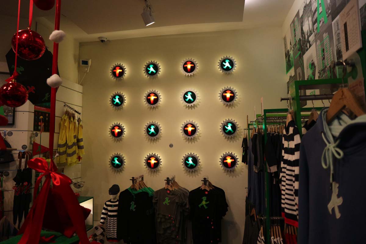 Постійно відкривалося щось цікаве. Виставки, прикрашені дерева, фонтани та наостанок тематичний магазин світлофорів. У цьому магазині було все пов’язане із зеленими та червоними чоловічками. Тут можна було купити все, включаючи світлофори.