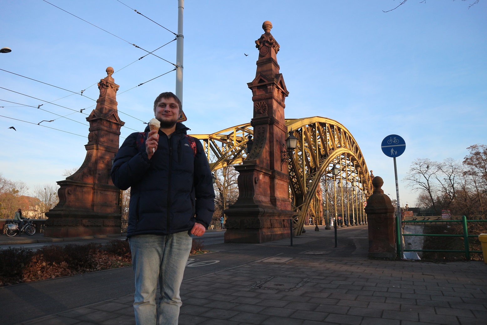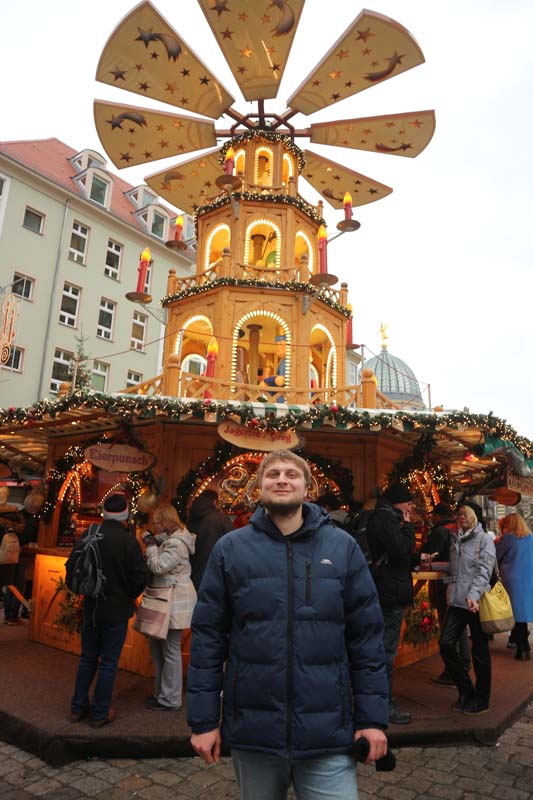 Ранковим фліксбасом ми поїхали до Німеччини. До наступного фліксбасу ми маємо 8 годин, має з головою вистачити на це німецьке містечко. До речі, я його уявляв значно менше. З цього боку Німеччини ми ще не були. Сам Дрезден нам сподобався, але, щиро кажучи, рівень життя тут нас зовсім не порадував. На вокзалі можна залишити речі в камері схову, яка приймає лише євро монетки. Євро монетки можна розміняти лише у зламаному апараті, а відповідно розміняти не можна. Працівники місцевих ресторанів та магазинів сидять із ще більш похмурими обличчями, ніж у наших людей в автобусах у годину пік. У закладах туалети платні, перед туалетом Макдональдса стоять металеві ворота з турнікетами на весь зріст, щоб раптом безкоштовно ніхто не пройшов. А сам центр міста, таке враження, що вчора пережив пожежу. Дрездену до Вроцлава по атмосфері і комфорту як до місяця. Зрозуміло, що моя думка не ґрунтується на якихось детальних аналізах та порівняннях, це просто перше враження про рівень життя у місті. Але якщо, наприклад взяти Франкфурт-на-Майні, то там я таких проблем не помічав) А з хорошого в Дрездені це піші вулиці, на обох берегах є де погуляти, є де смачно і недорого поїсти. Купу тематичних магазинів. І, як завжди, радісне — це новорічний ярмарок.