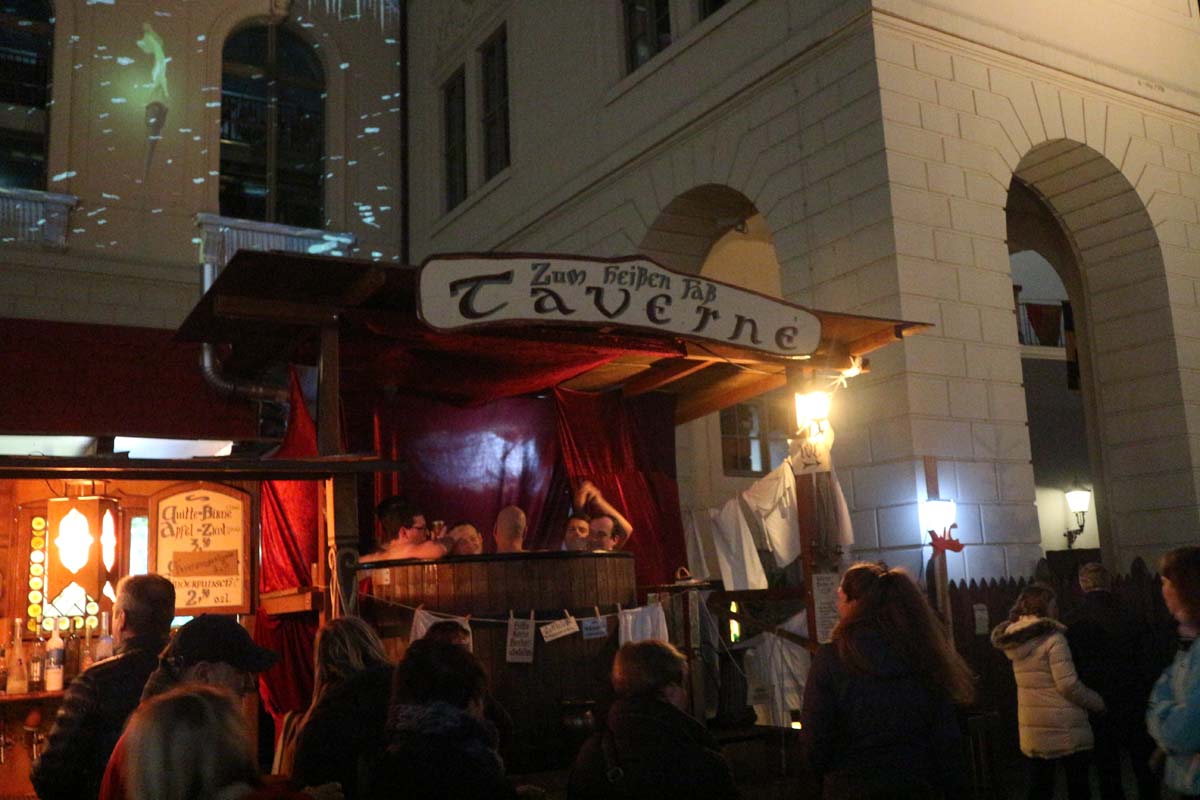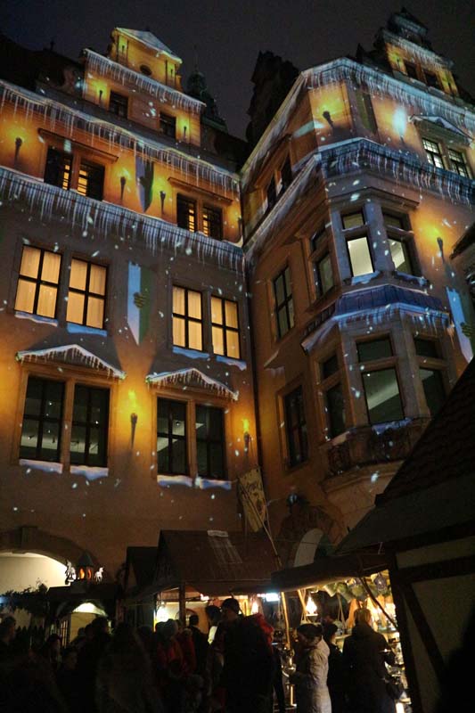 Тут він був з розмахом. Всі працівники в лотках були одягнені в середньовічні шати, грав оркестр, увечері на стіни будинків проектувалася снігова хуртовина, палаючі смолоскипи та висячі прапори.